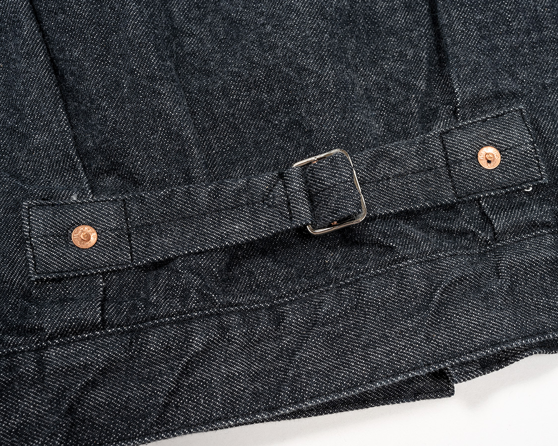 Denim Jacket, Buckle Back, 13.75 Oz, Right Hand Indigo Denim, American Cotton 100% Denim Jacket, Buckle Back, 13.75 Oz, Right Hand Black Denim, American Cotton 100% Denim Jacket, Buckle Back, 10.5 oz Right Hand Denim