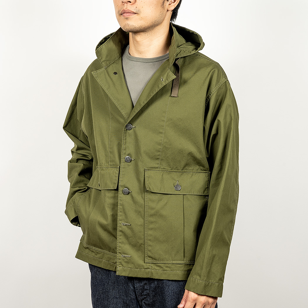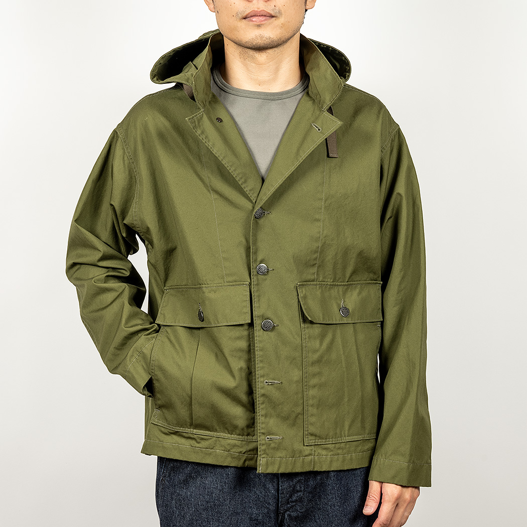 「春にフードブルゾンか、便利そうだな」と思いつつ、それをそのまま作るのは面白くない。何かモチーフは?と考え、米軍系古着で通称「M43」と呼ばれる、腰丈のシャツジャケットを思い出しました。