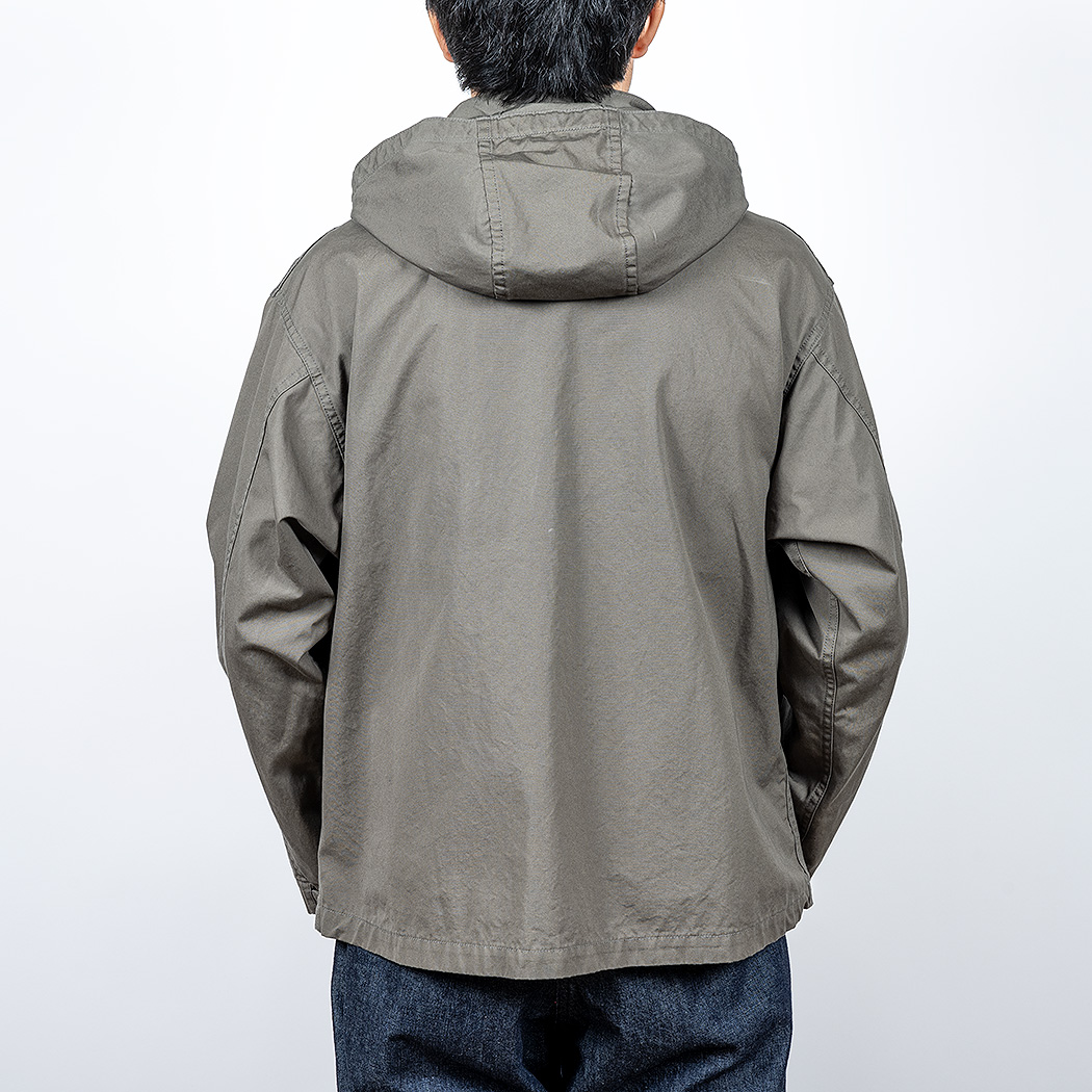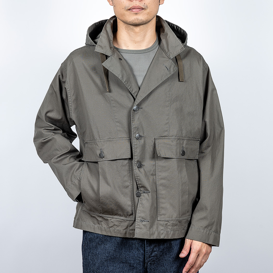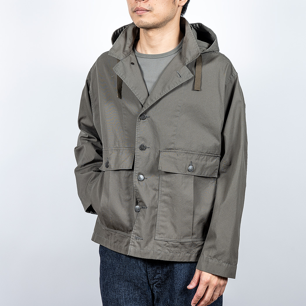 「春にフードブルゾンか、便利そうだな」と思いつつ、それをそのまま作るのは面白くない。何かモチーフは?と考え、米軍系古着で通称「M43」と呼ばれる、腰丈のシャツジャケットを思い出しました。