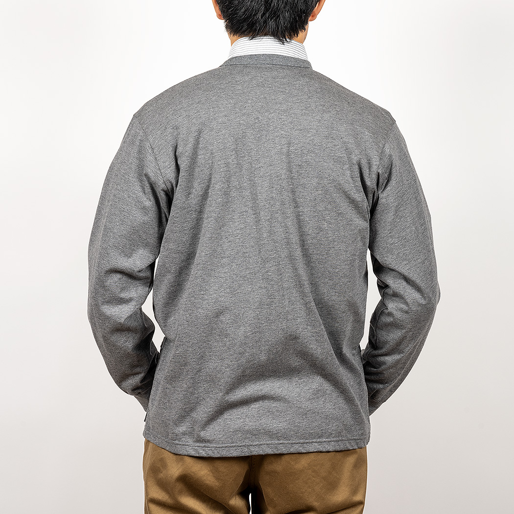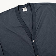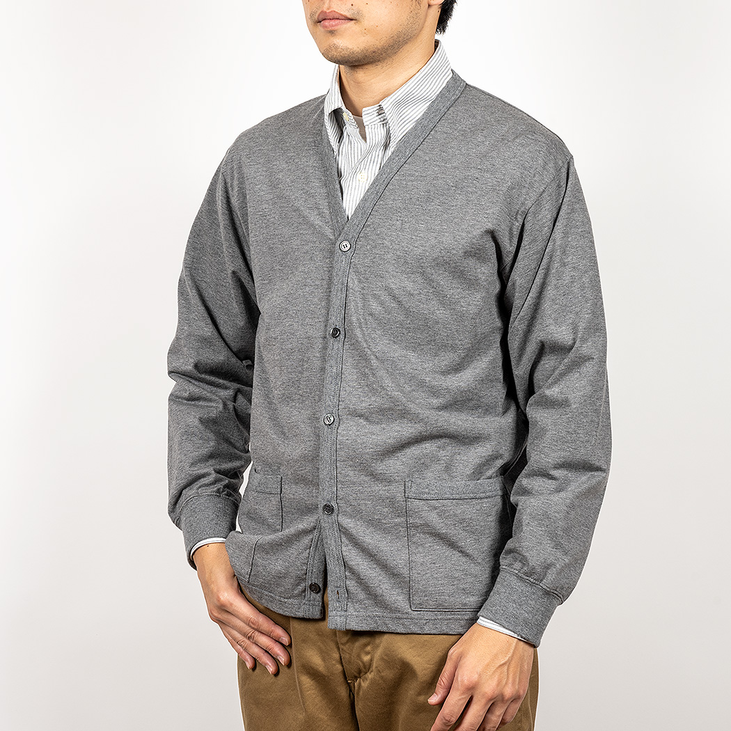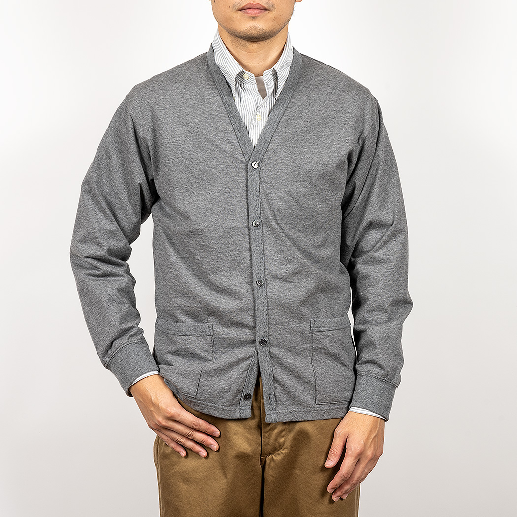 カーディガン、シャツの上に着て、寒い時期は上にジャケットを着る中間着。 桜が散るころにはアウターとして着ることもできる。セーターカーディガンがそろそろ終わりかな?という時期からが 3 PLY Cardigan の出番。ウールのカーディガンと違い気軽に水洗いできるのも良い点です。ボタンはあえて貝ボタン風のポリエステル樹脂。これなら洗濯してもまず割れる事がありません。