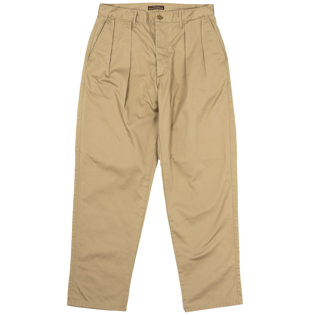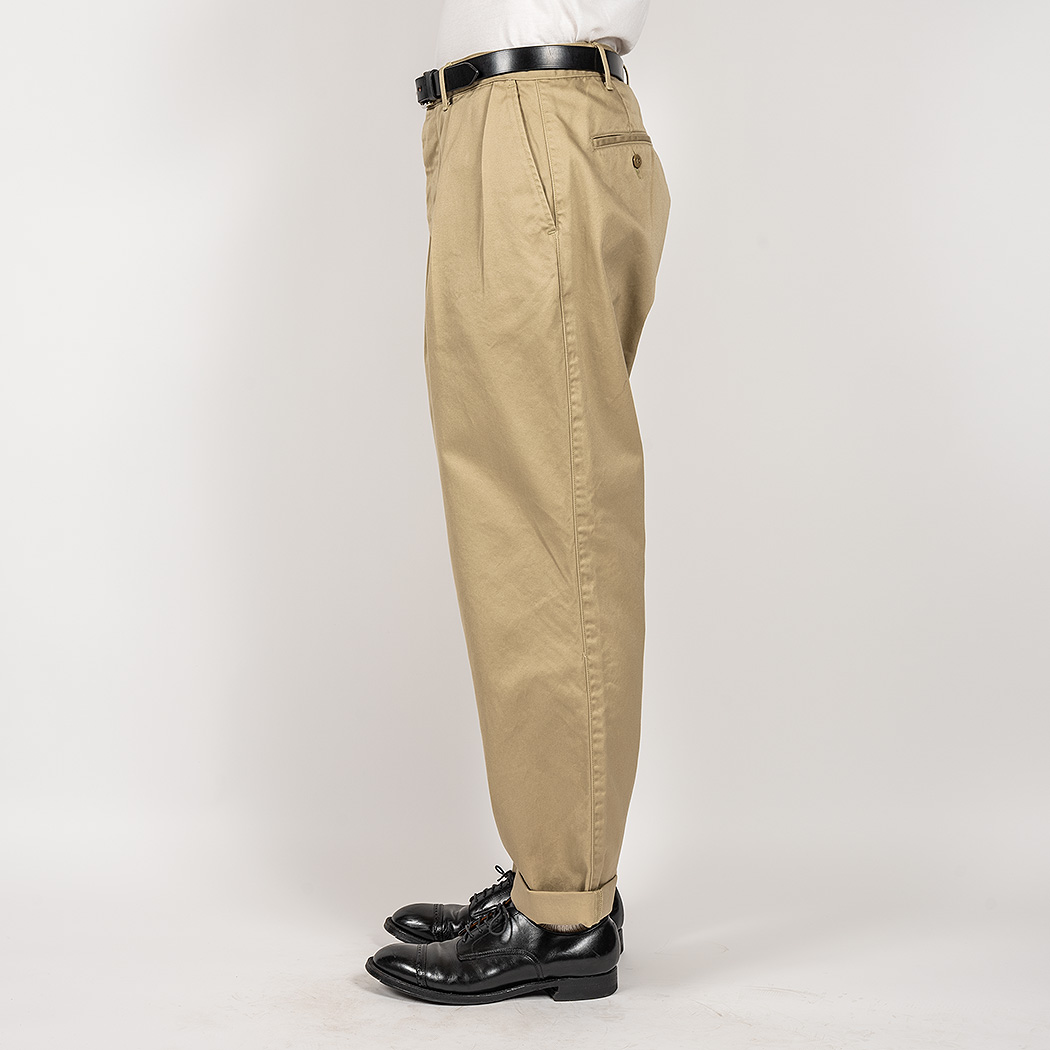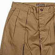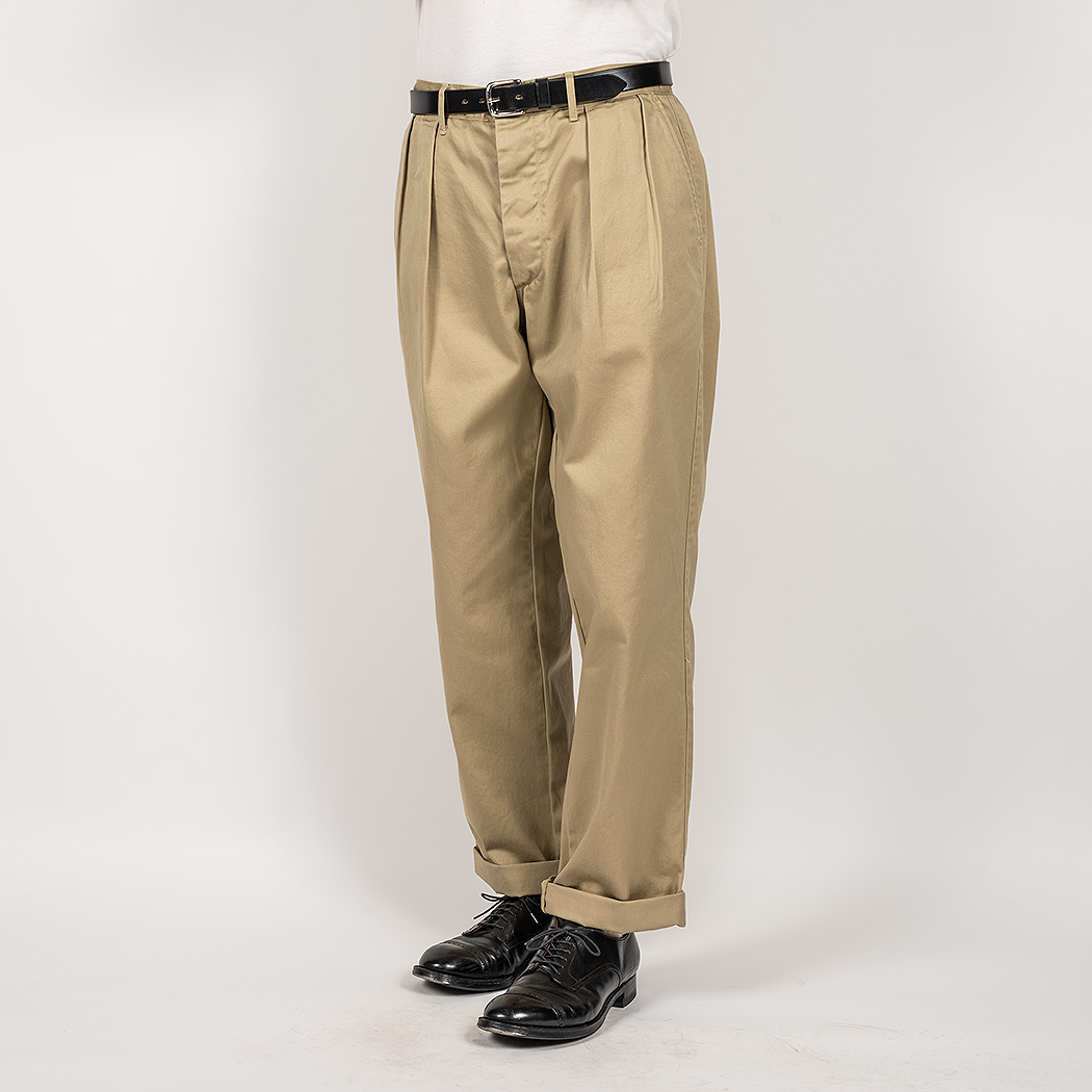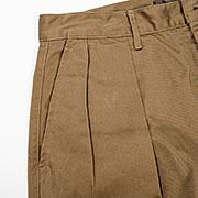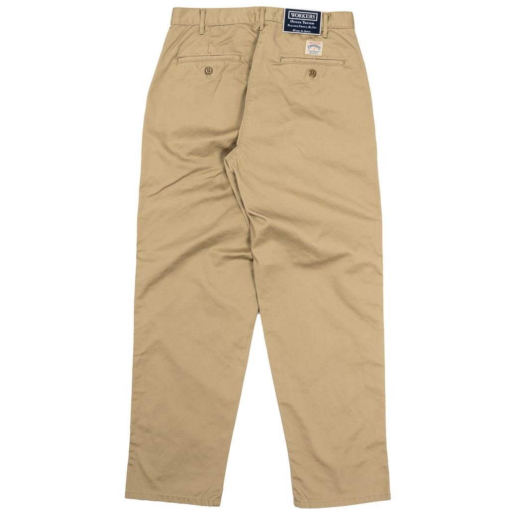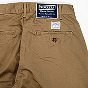 素材、チノは10 オンス程度の高密度生地。USMC Khaki はWORKERS 別注色。ビンテージのUSMC と思われるチノパンから取った、土臭い濃いめのカーキ。Light Beige はいわゆる「チノパン」のベージュ。 |