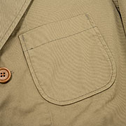 チノは8 オンス。トロピカルと比べるとかなりしっかりした厚み。コットン生地はこれ以上薄くなると「チノ」というより「ツイル」、シャツ生地に分類されてしまうのでブレザーを作るにはこれもギリギリの厚み。私もそうでしたが「いきなりウールはちょっとドレスすぎる」という方はコットンブレザーからトライしてみてください。