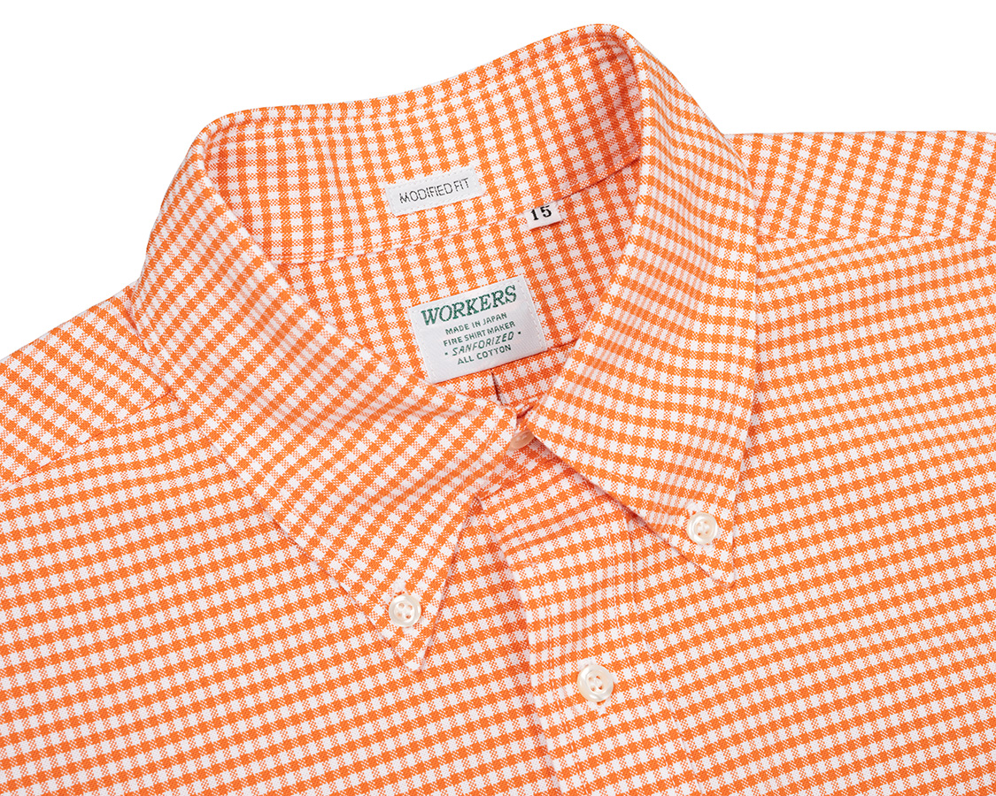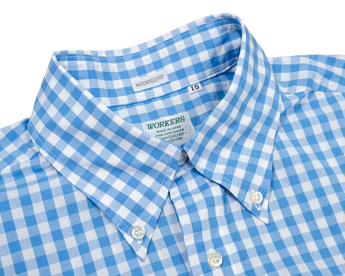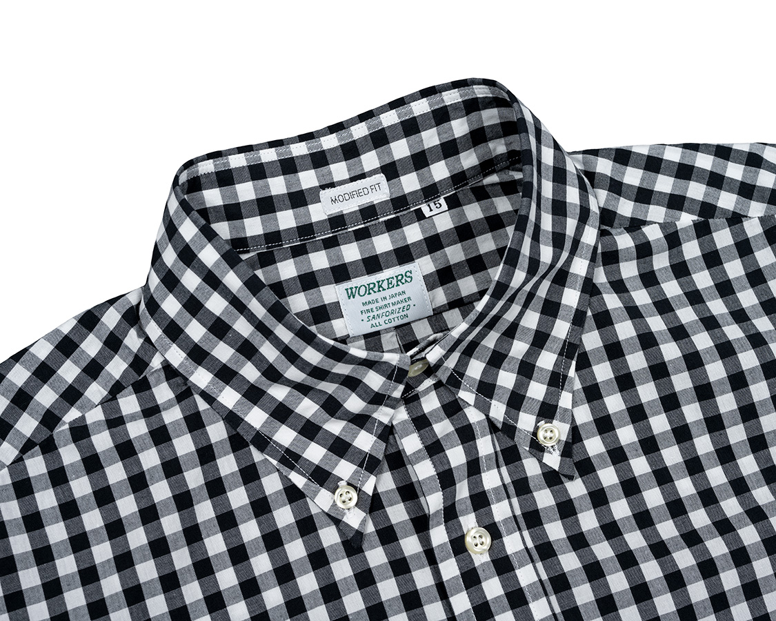 WORKERSでは台襟のボタンを開けて着た時に適度なロールができるよう位置を決めています。