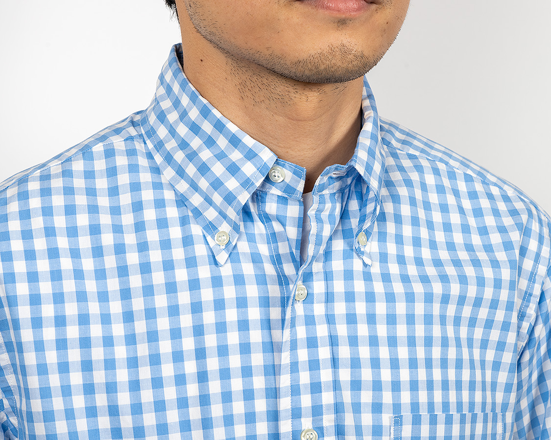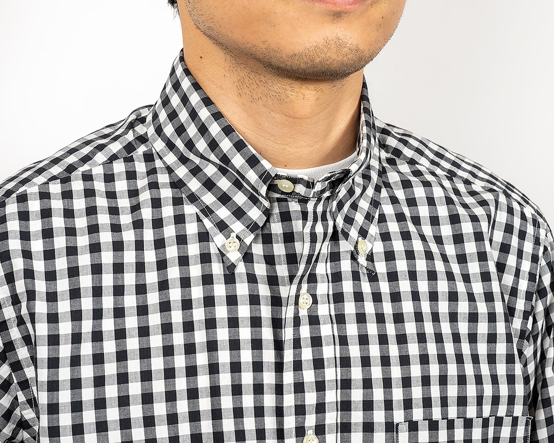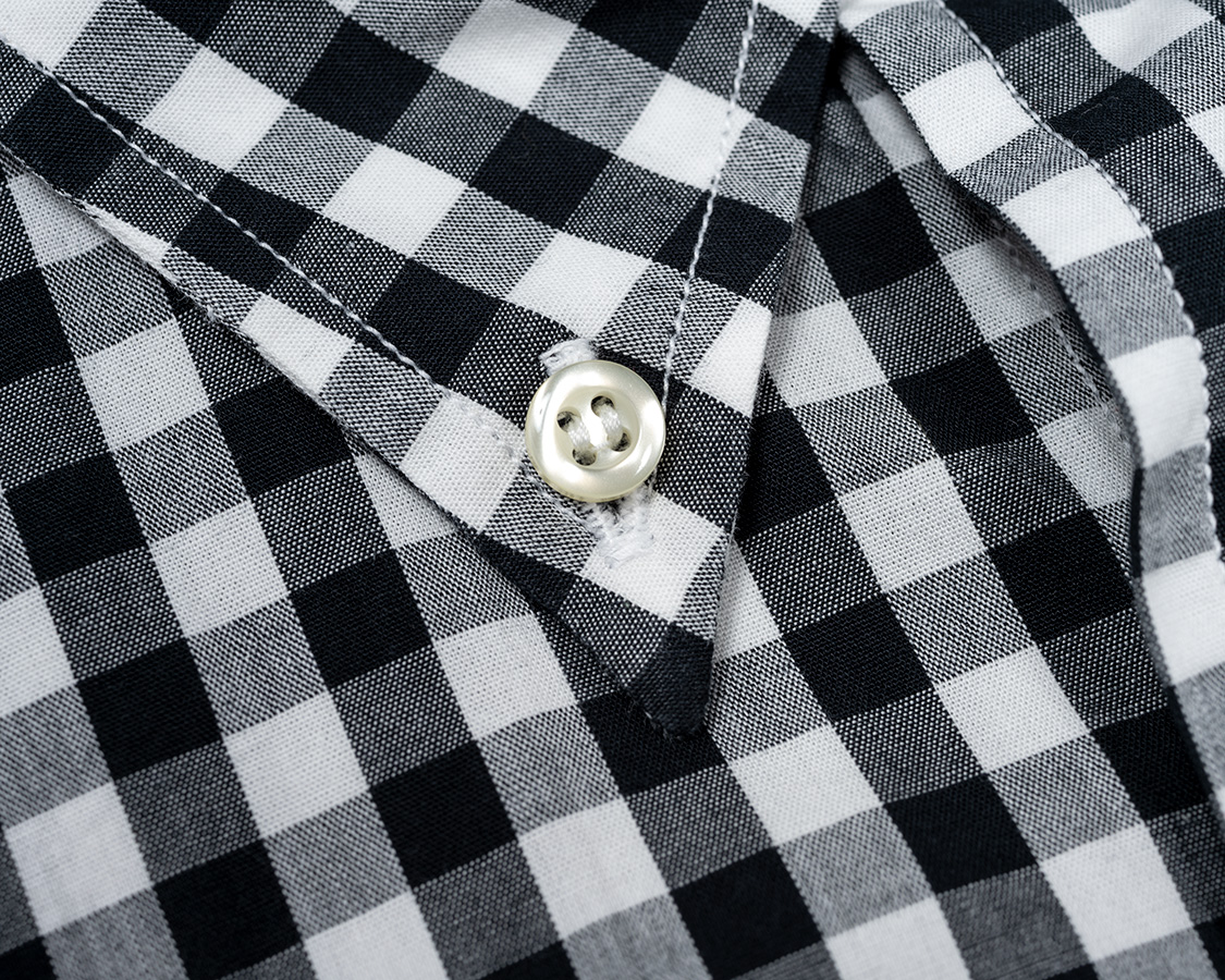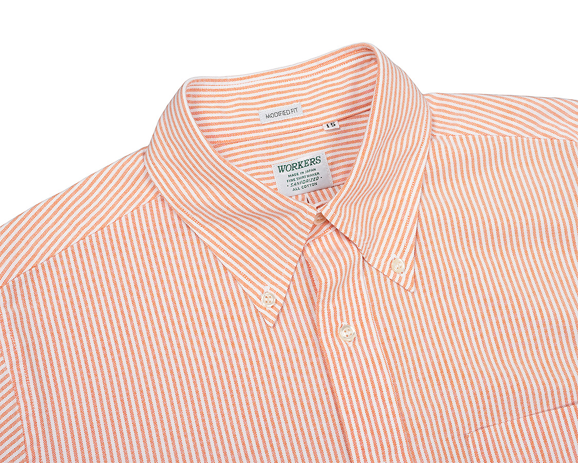 WORKERSでは台襟のボタンを開けて着た時に適度なロールができるよう位置を決めています。