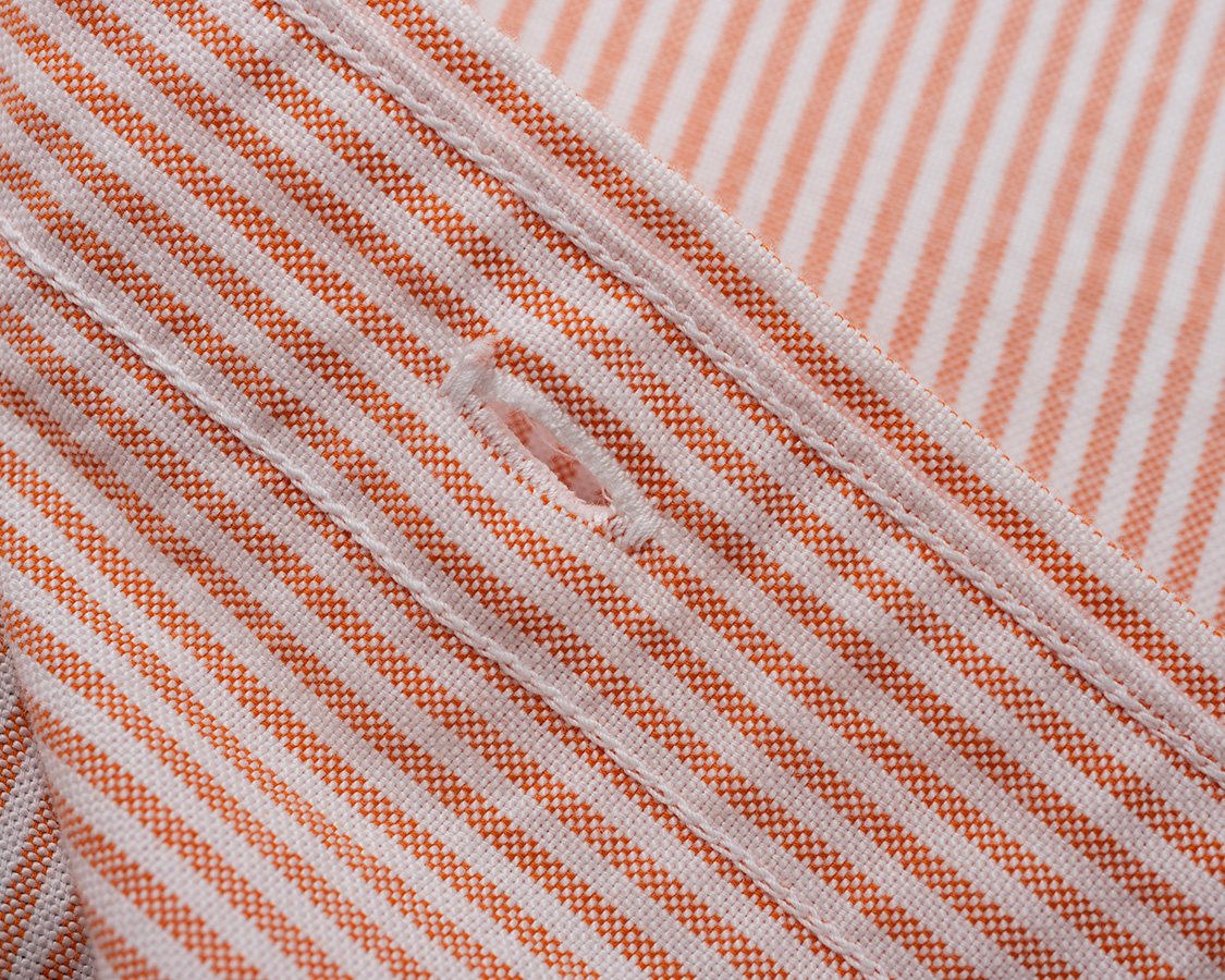 この前立ての環縫いの為だけにミシンは買って工場に貸し出しています。カンスぺの前立て縫いが私は一番、綺麗だしメンテもしやすいので好きです。もともと、頼んでいた工場は「今日は太番手、明日は細番手」という風に、いろいろな用途にその前立て縫いを使っていました。これだと、何とか縫えても、「完璧だな」という部分まで中々ミシンのセッティングを持っていけない。そんなフラストレーションを感じて「WORKERS専用」の前立て縫いミシンを買ったのが、もう7-8年前でしょうか。新品で50万弱。高かった・・・でも、なんだかな〜というステッチのシャツ見るぐらいなら多少、苦しい生活してでも変えたかったのです、ステッチを。