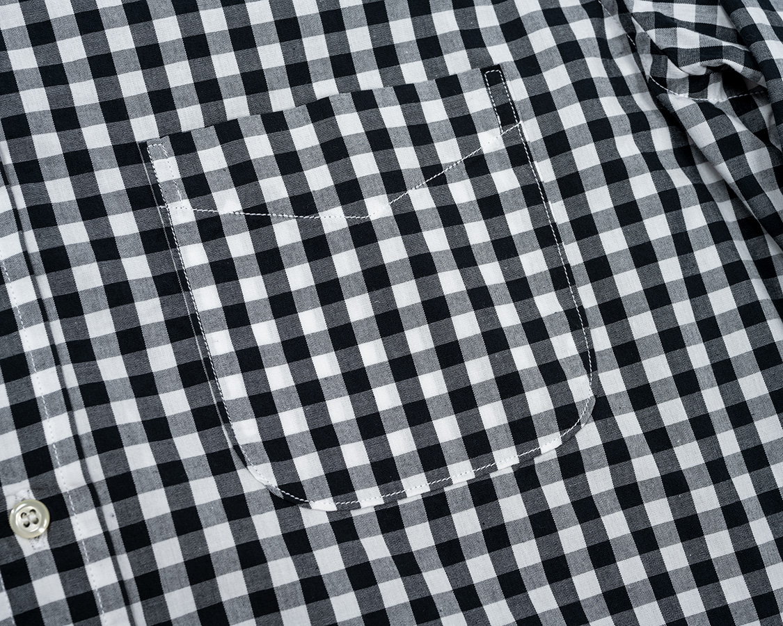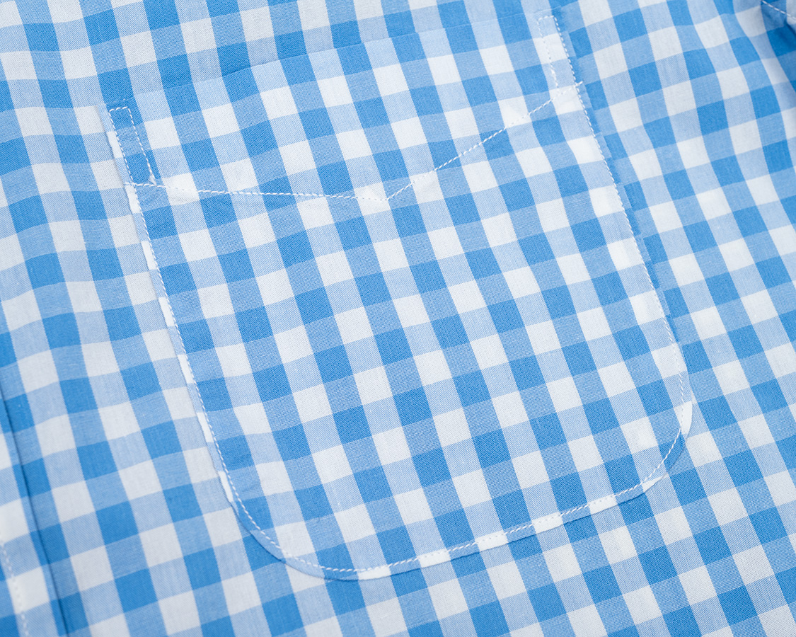 WORKERS製品を縫ってもらっているシャツ工場さんも以前はポケットセッターで大量に同じものを・・・という方向でしたが、カジュアル製品を縫う時にあえてポケットセッターをやめました。多品種・少量を手作業の上手さで・・・に変えたわけです。このポケットの丸みを折るのが私は苦手です。細かく、「菊寄せ」と呼ばれるヒダを入れていくのです。ここは、器用・不器用が出る部分です。