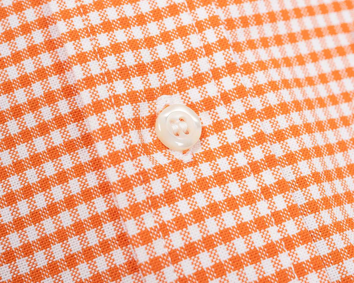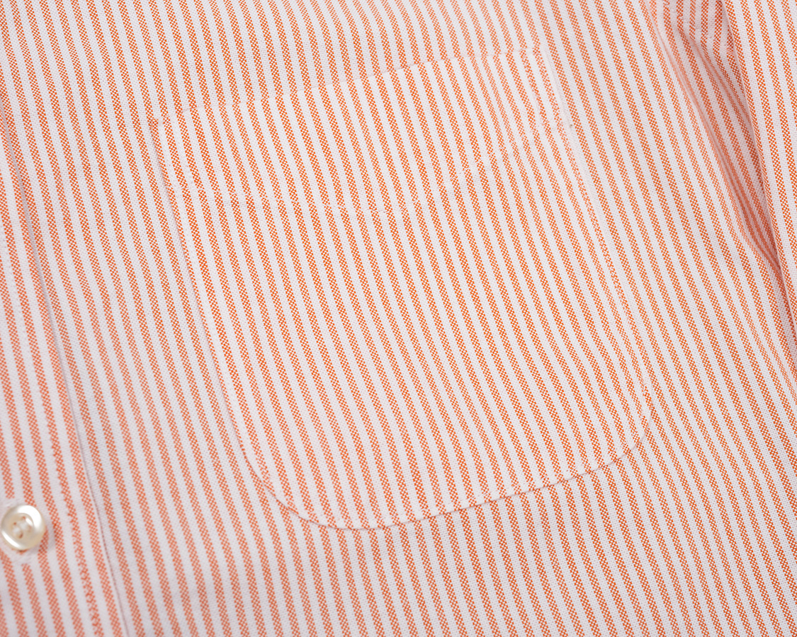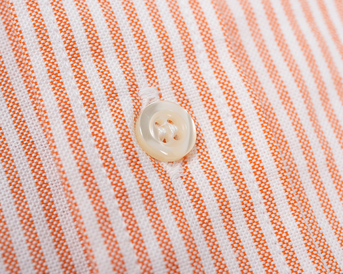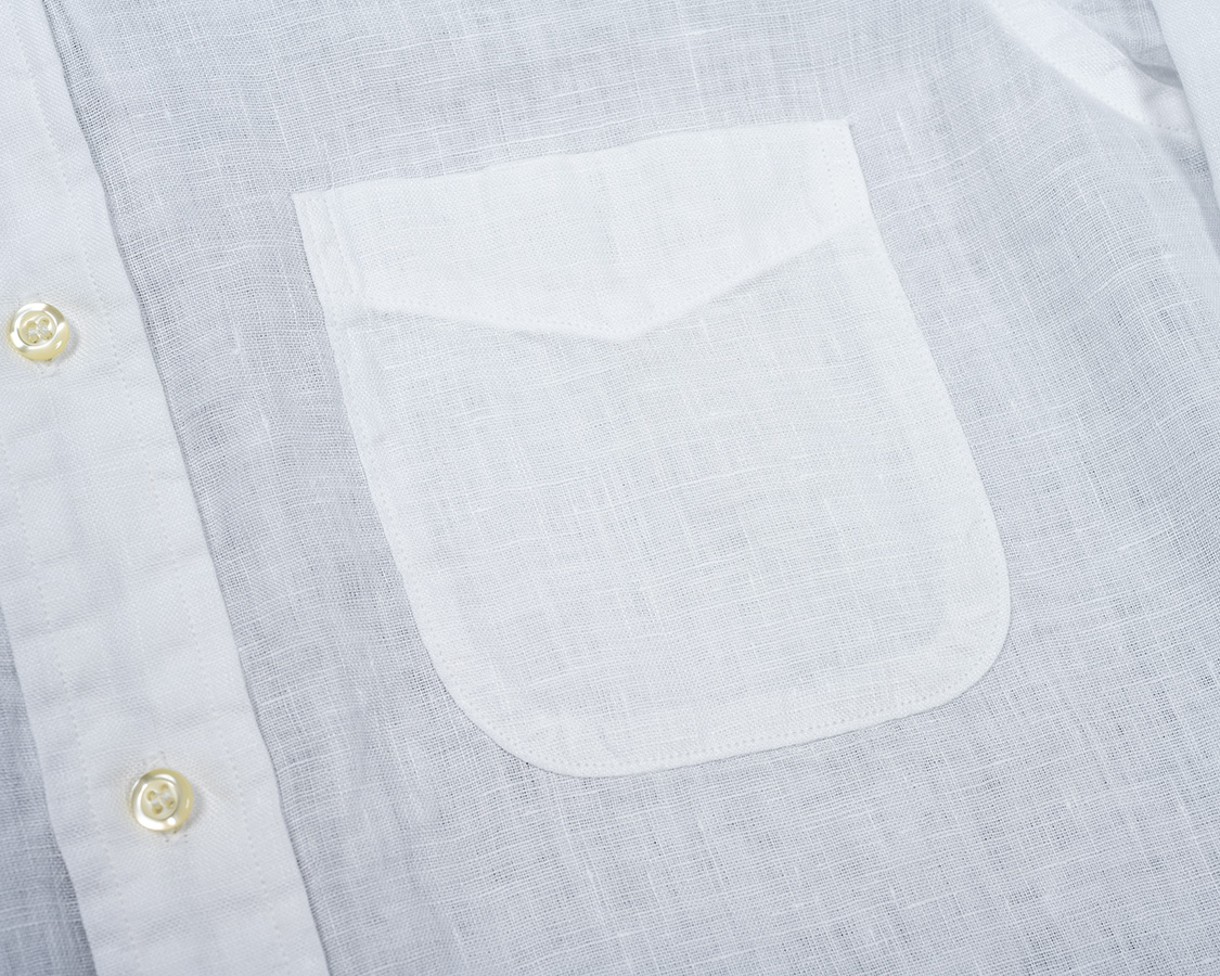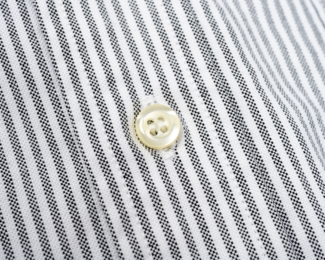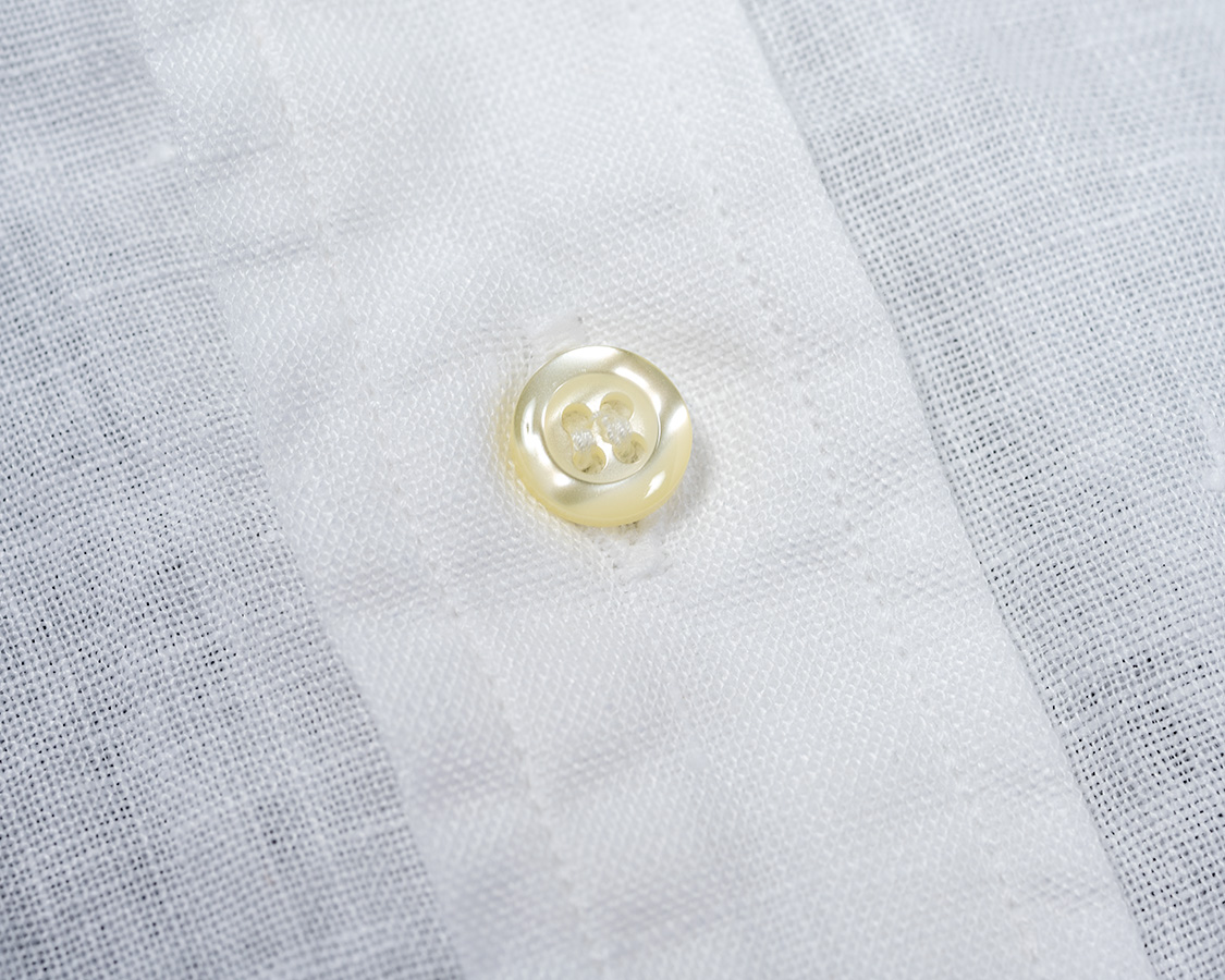 ボタンはポリエステル系樹脂の耐衝撃ボタン。ここも昔は「クラシックなボタンダウンは貝だろう!」とかやってましたが、ある時アメリカのシャツメーカー社長のインタビューを読んでいて「60年代以降、衝撃に強いポリエステル系樹脂ボタンが増えたおかげで洗濯でボタンが割れるクレームが激減した」という一文見て探したボタン。