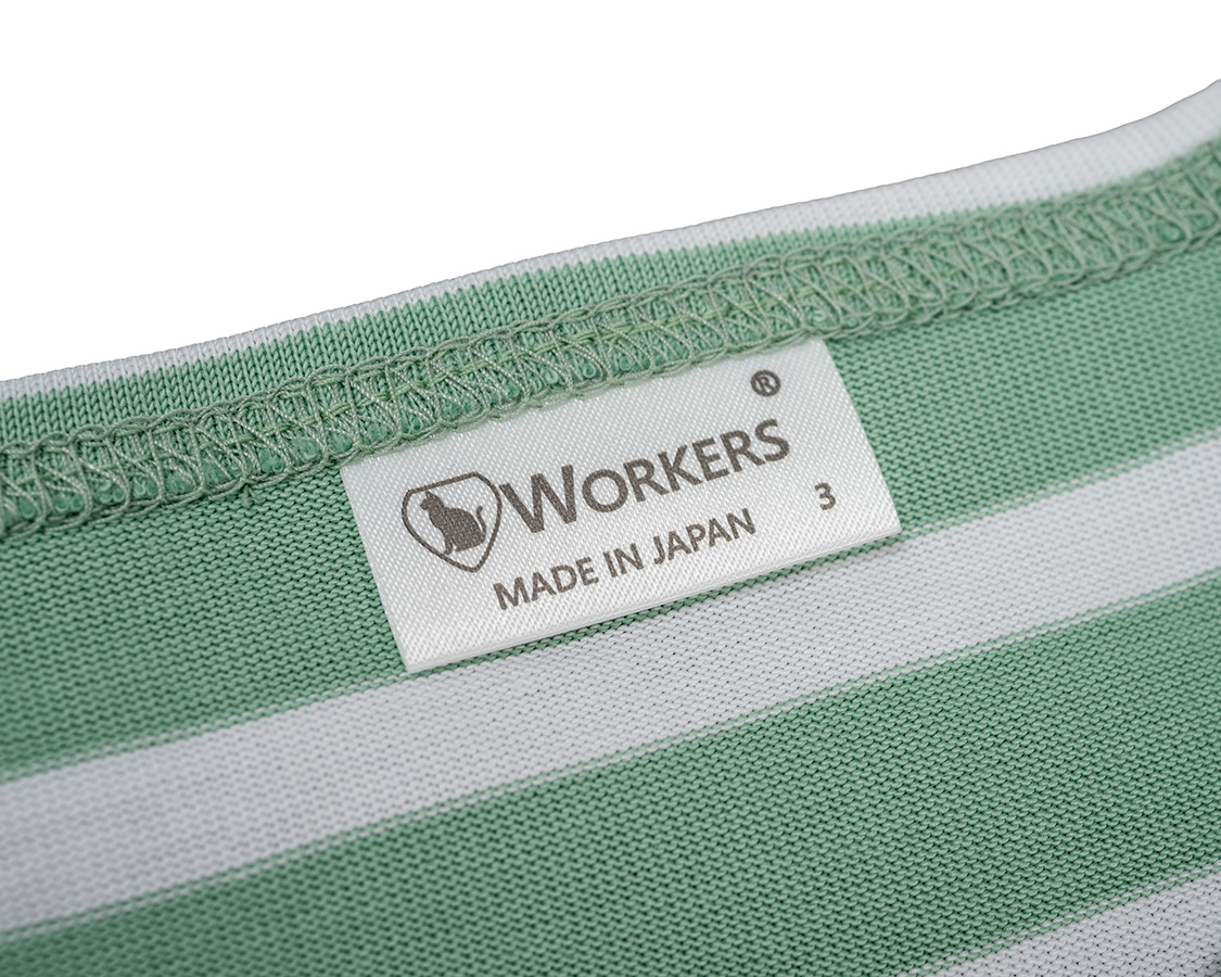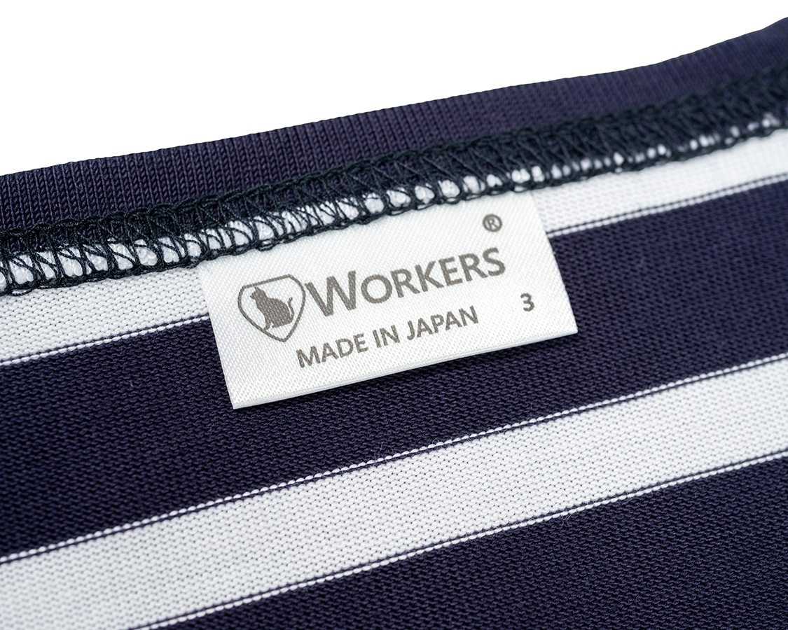 脇よりにオフセットされたヘンリーネック。もともと、おそらくアメリカ物のウール肌着から着想を得た仕様。