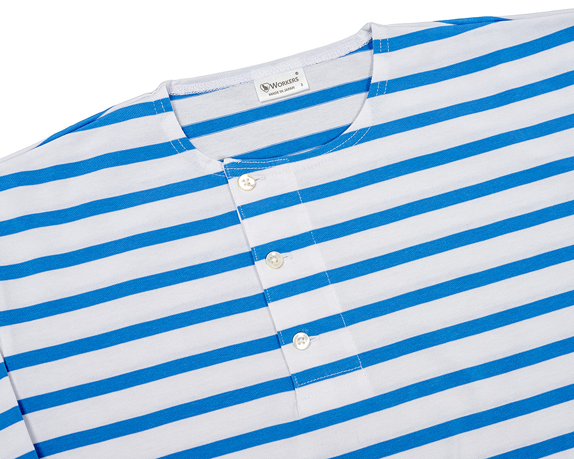 Border Henley, Half Sleeve, Aqua x White Border Henley, Half Sleeve, Black x White Border Henley, Half Sleeve, Navy x White Border Henley, Half Sleeve, Opal Green x White