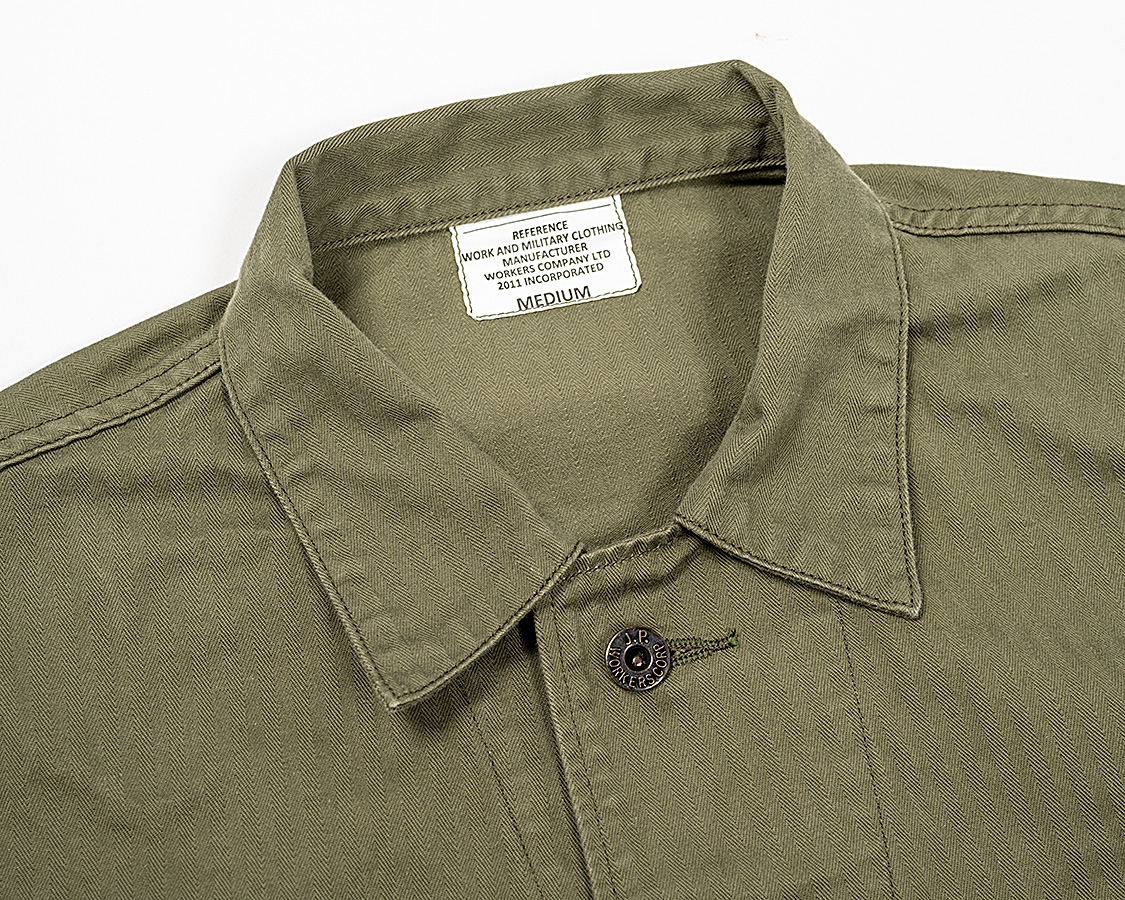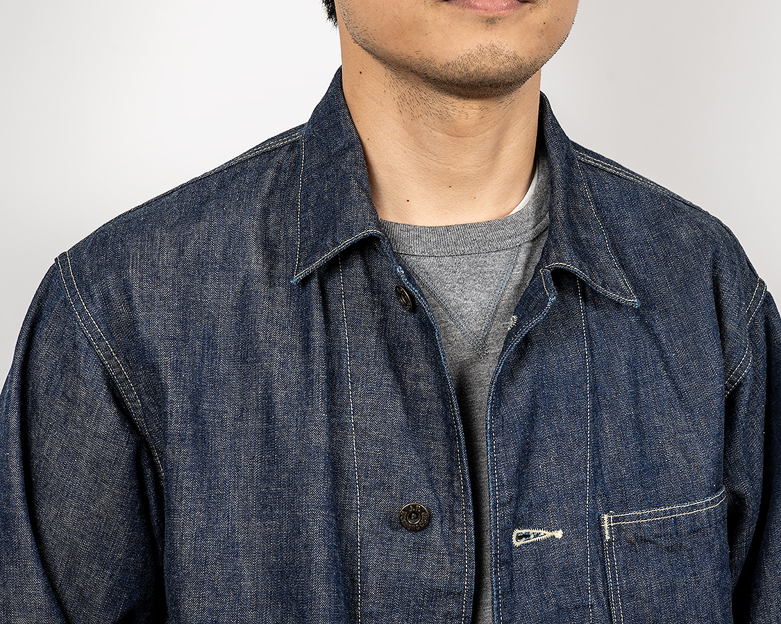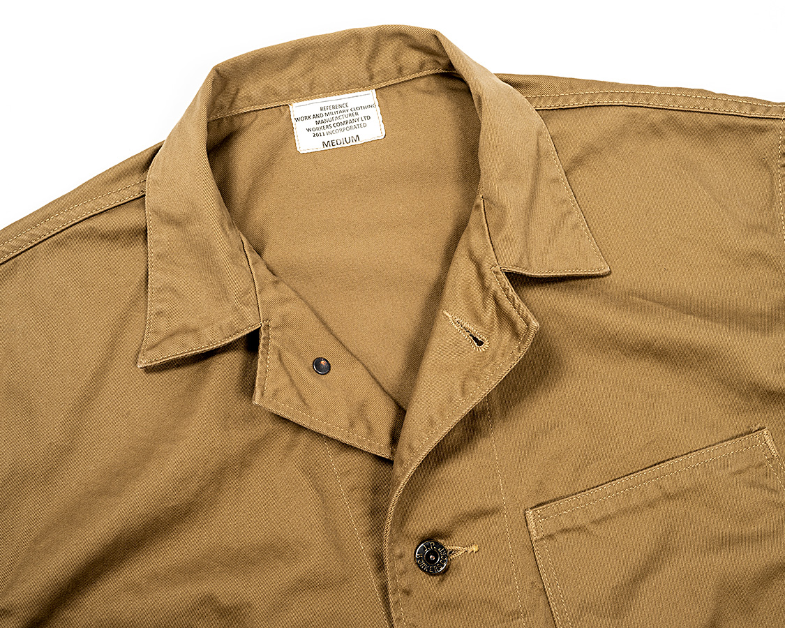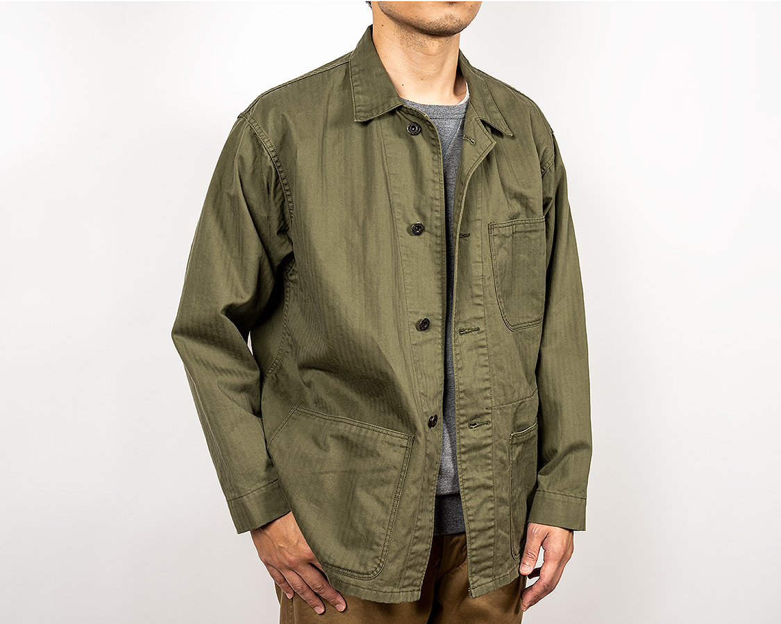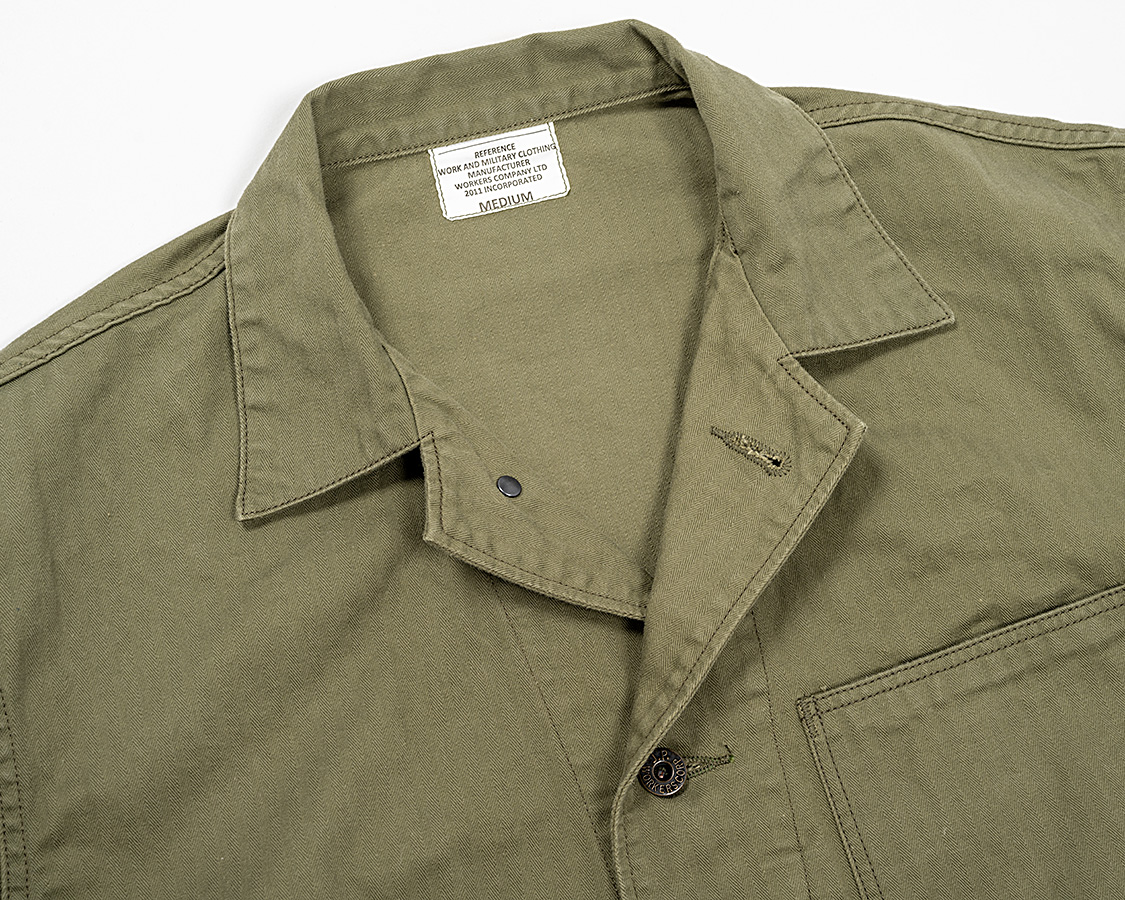 ご覧の通り、わざわざ言わなければミリタリーの何々だとか感じない、普通のカバーオール。オリジナル見ながら変更したのは袖。オリジナルはアームホールが小さく袖も細い。それを、カマ(アームホールの縦方向)を広げて寸法を出し、袖もそれに合わせて太く。落ち気味の肩と合わせて、ゆったりリラックスしたフィット感に変更しています。