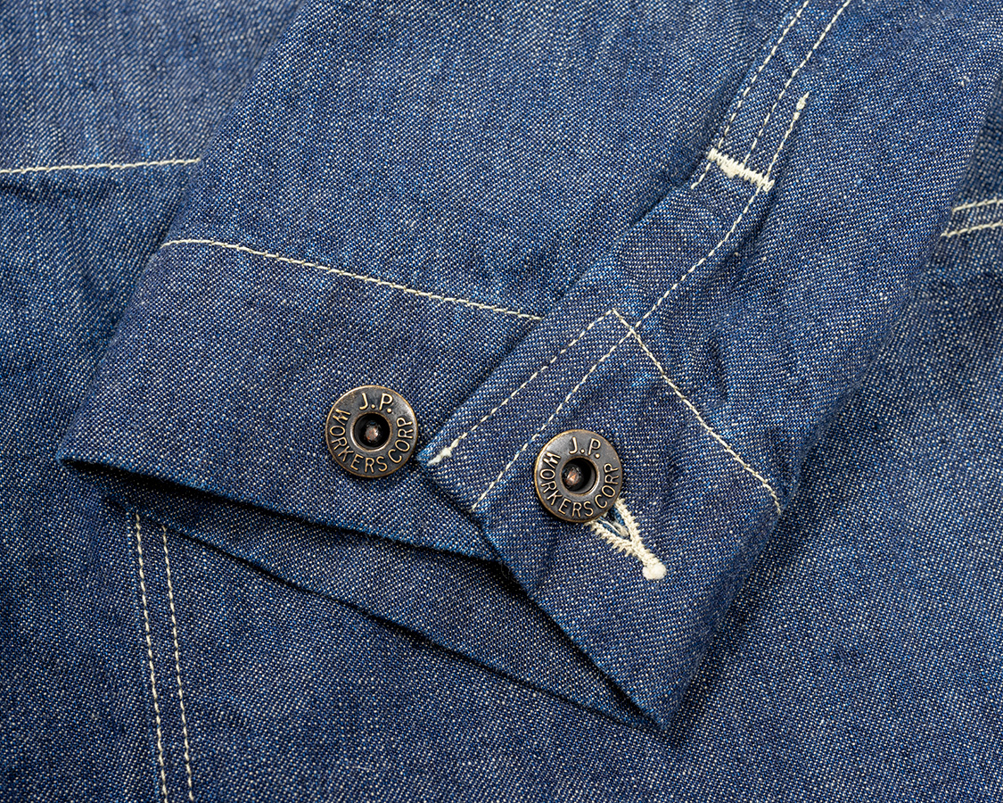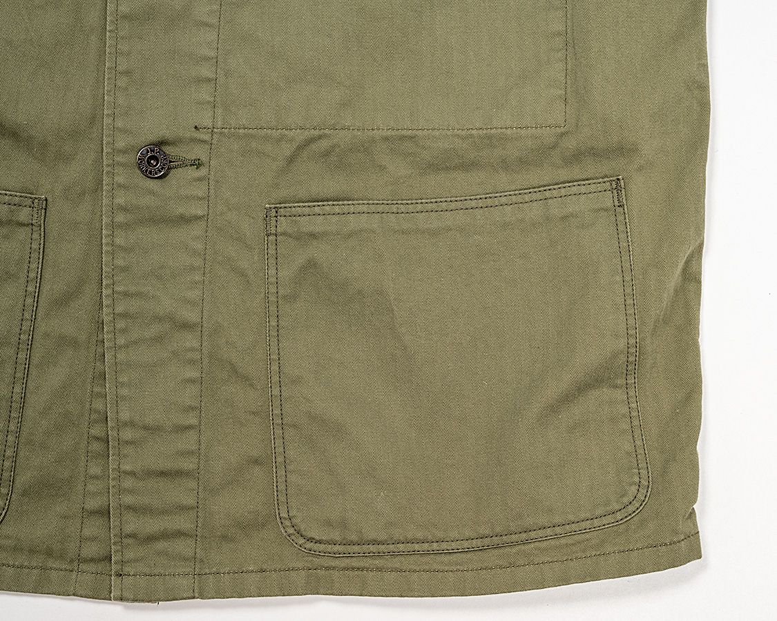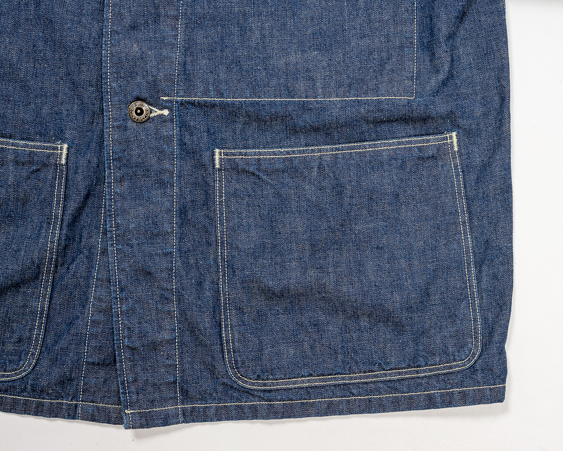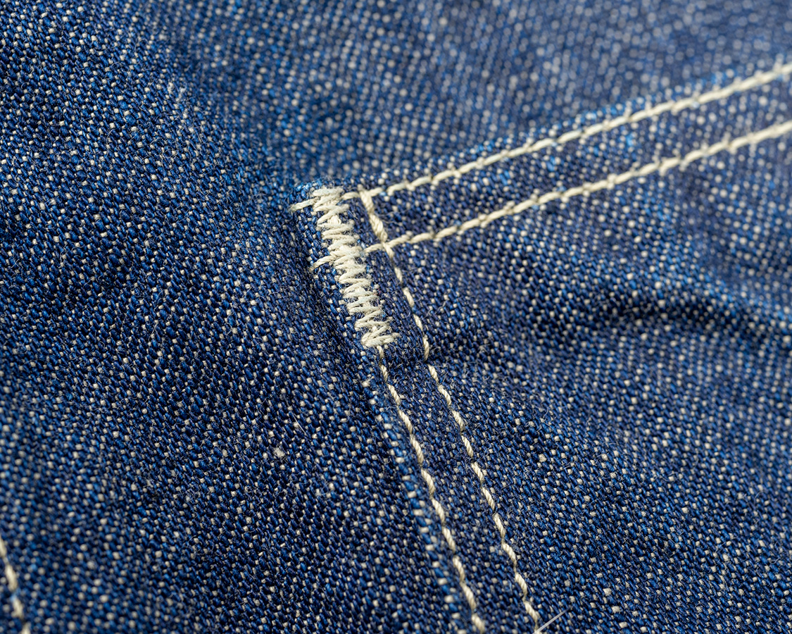 昔はこういう部分をギアやカムで制御してたのでやりたくてもこの工場にはあのカンドメ出来ない!とかよくありました。今回お願いしている工場さんは、運針やカガリ巾を電子制御されてる最新のカンドメミシン持っているので調整はお手の物。かつ、アメカジの服が好きなので「これぐらいですよね」とわかってやってくれます。