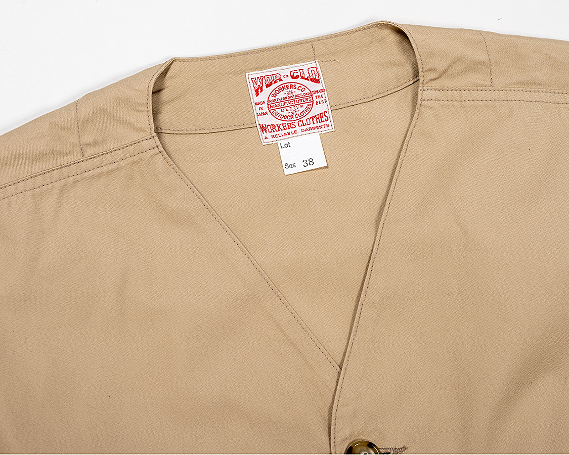 当初、チンストラップ付きの襟ありでファーストサンプルを作ってみましたが・・・なんともバランスが悪い。そこで、フロントはベストと同じくVネックに。