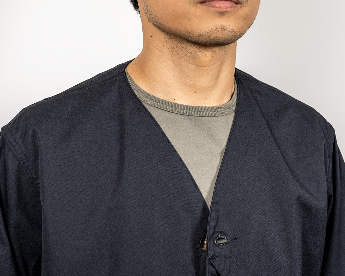 確かに、この形にはVネックの方が収まりが良い。中に襟のあるシャツを着たとしても、その上に襟が無いからすっきり見えるのでしょう。