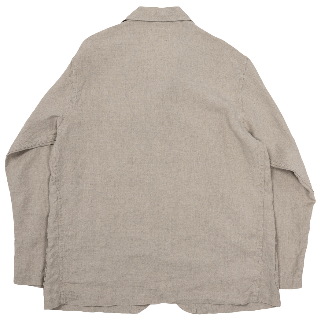 あくまで 「夏ジャケット」 なのでシルエットはゆったり。肩は落ち気味。袖も太く。ジャケットというよりはシャツに近いシルエット。