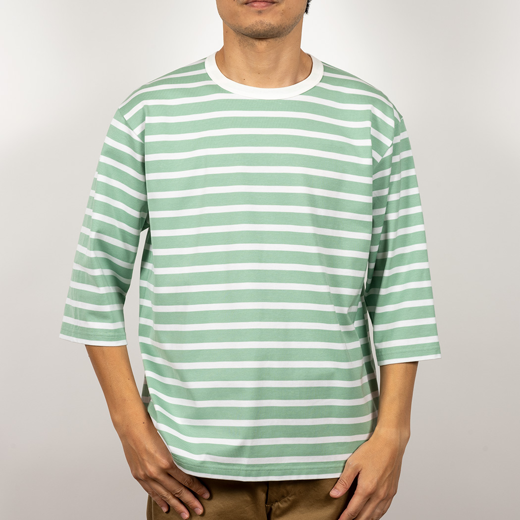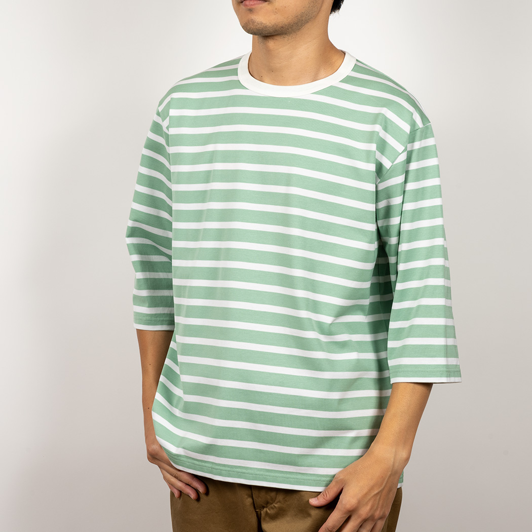Border T, Half Sleeve, Opal Green x White |
