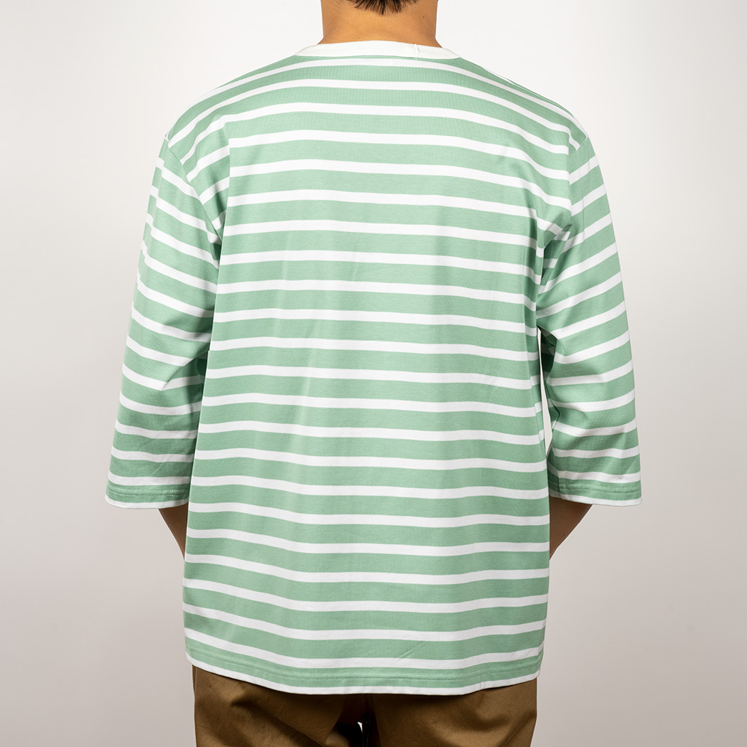 Border Henley, Half Sleeve, Opal Green x White |