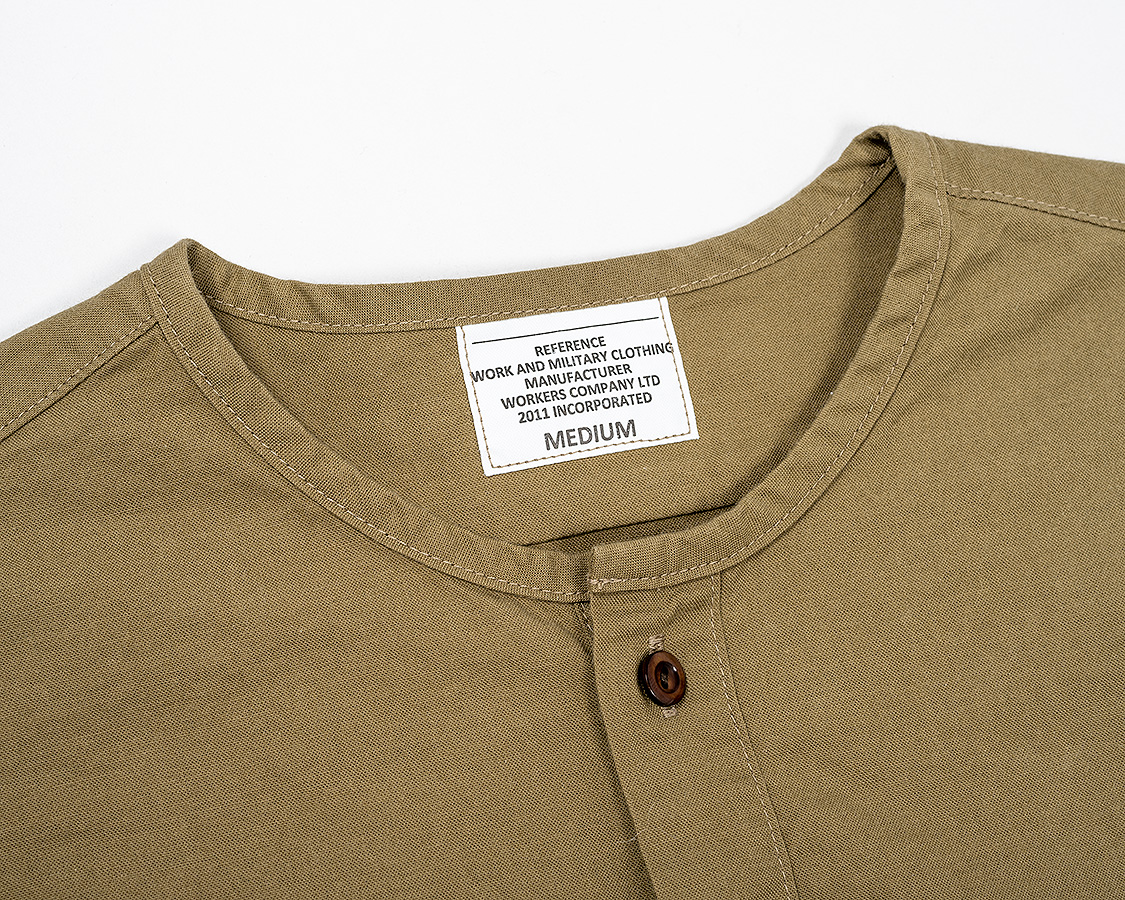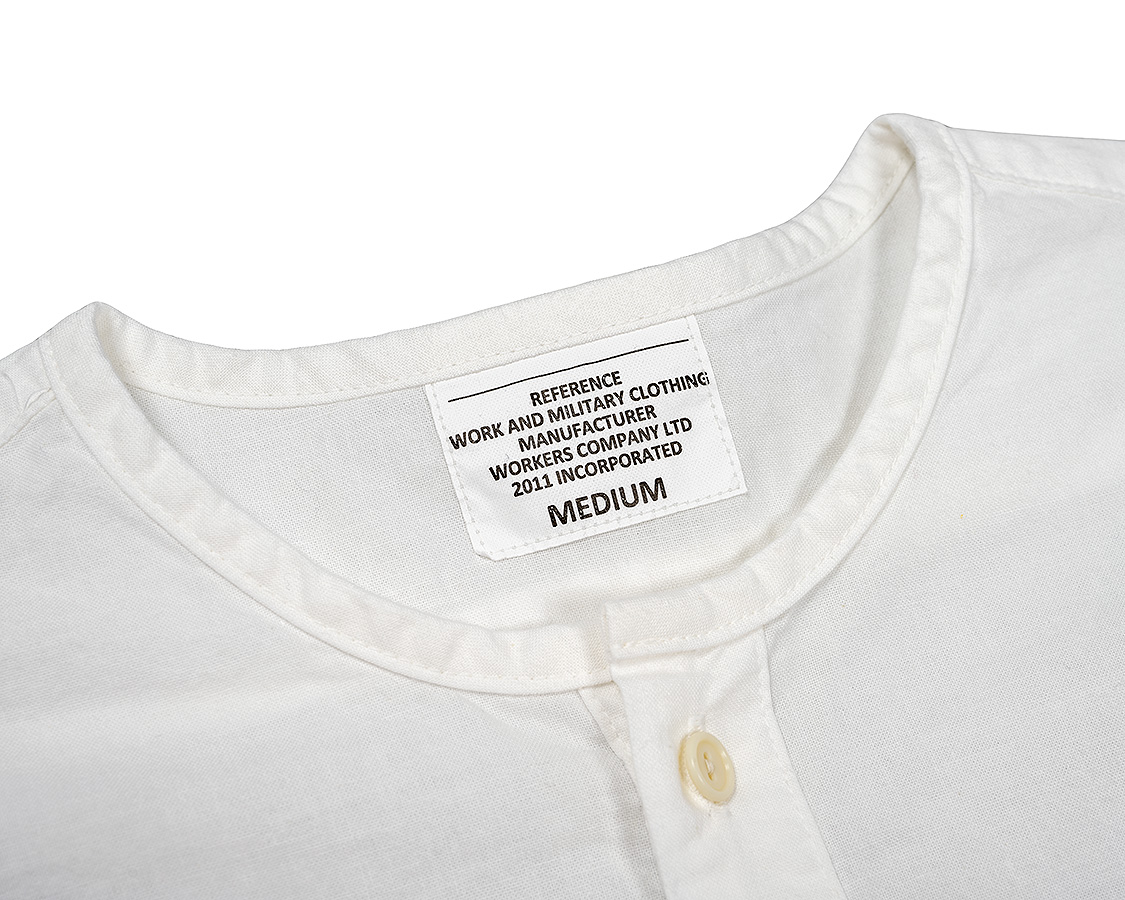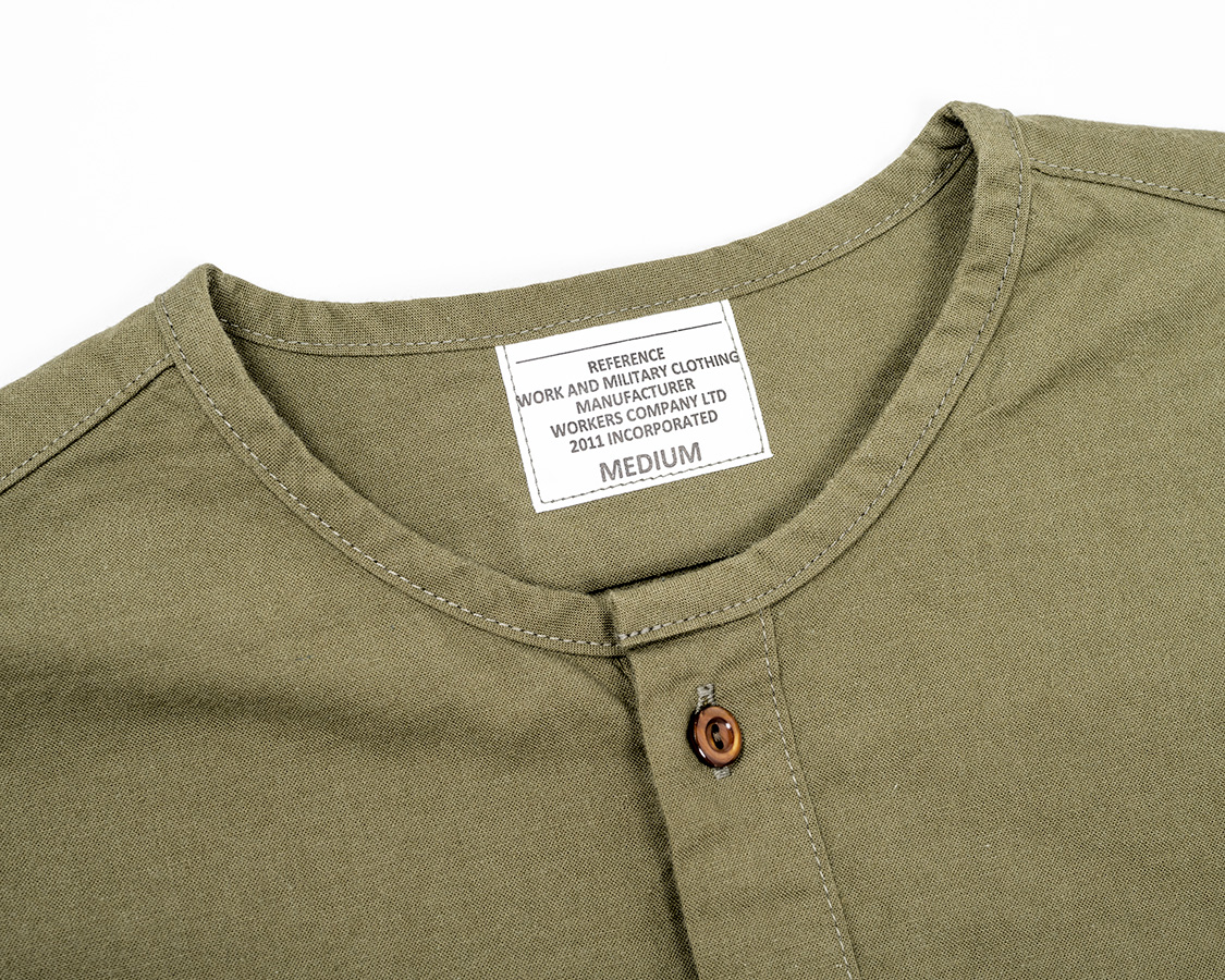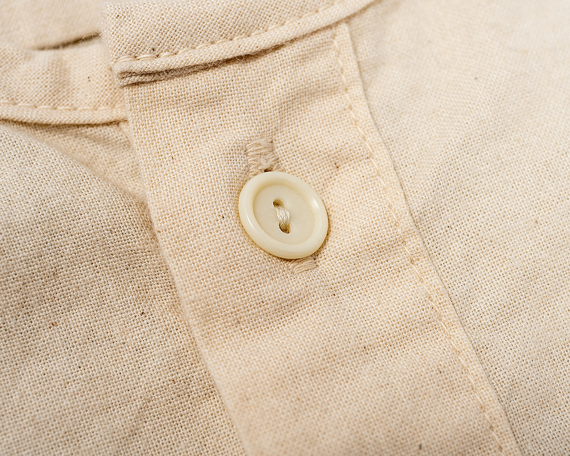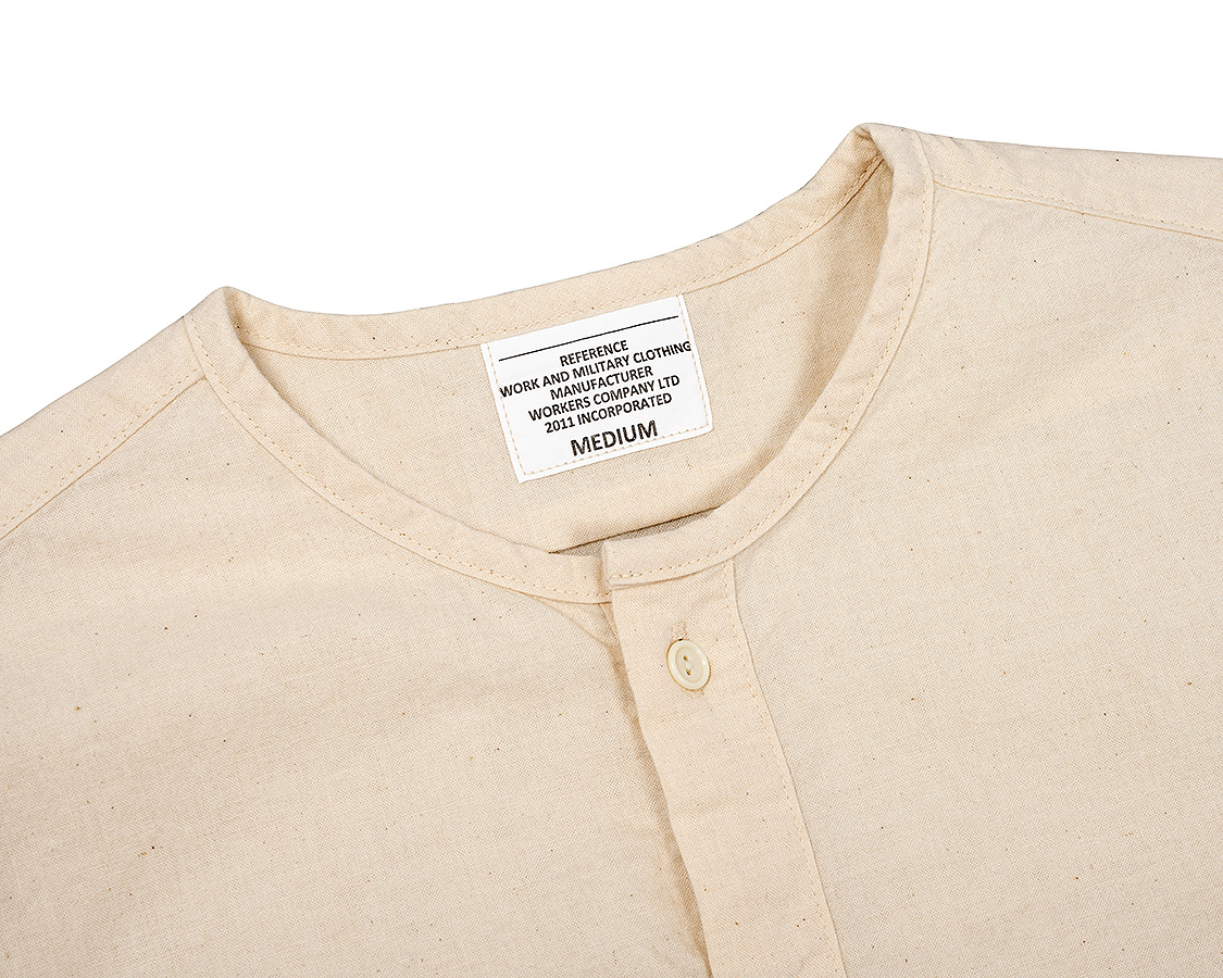 首回りはパイピング始末。スタンドカラーと違い、身頃を完全にパイピング状にくるむ。襟が立たないというか。だから、身頃の襟回りは通常のシャツよりわずかに首側に出しています。それをパイピングすると、最初の写真たちのような「Tシャツが見えるか見えないか」のちょうどよい寸法になります。
