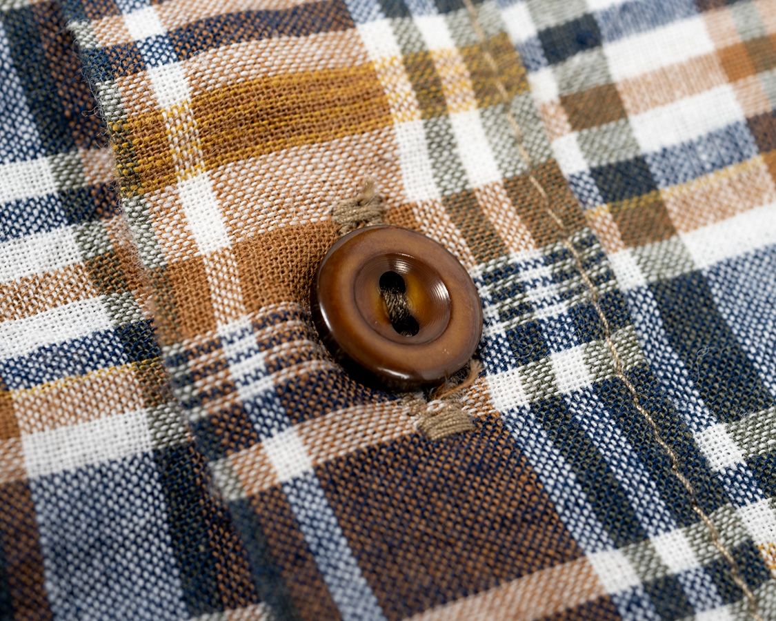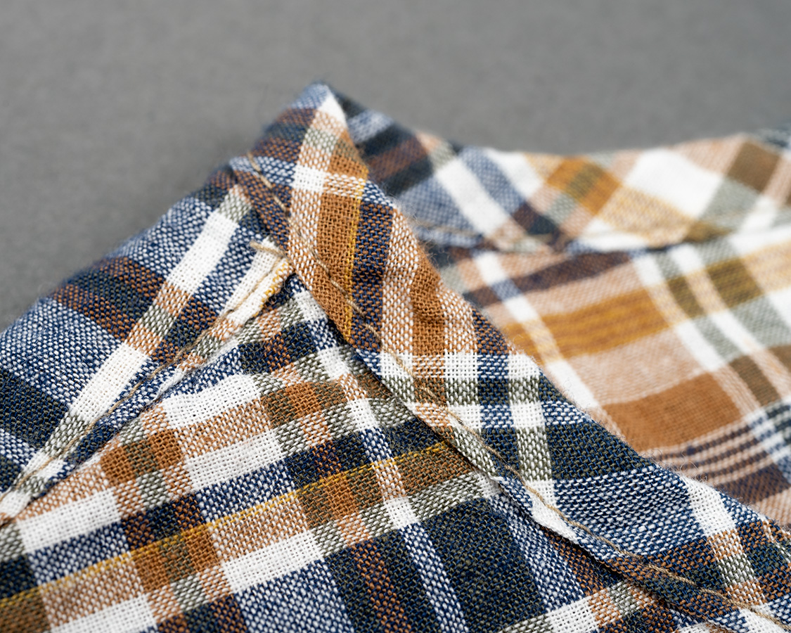 首回りパイピングのアップ。マドラスの織りが粗い事が良くわかります。