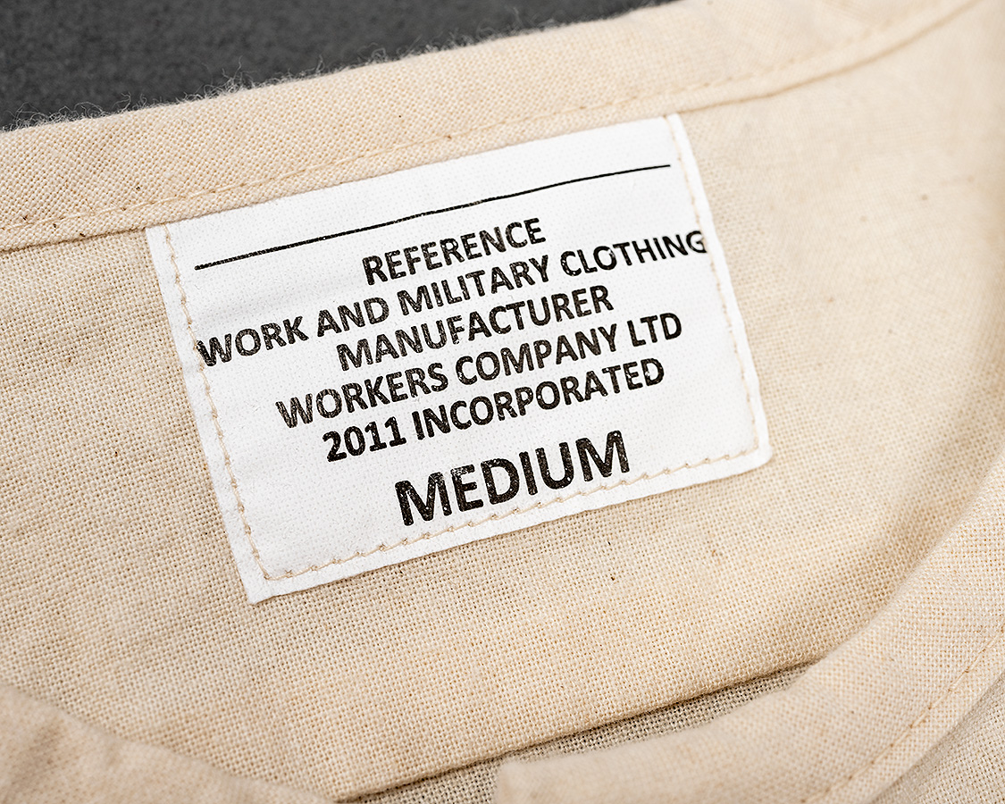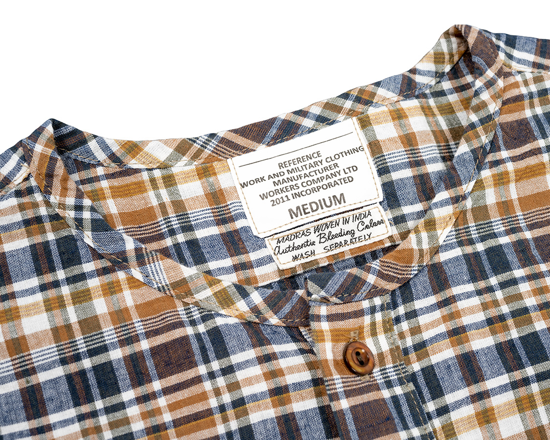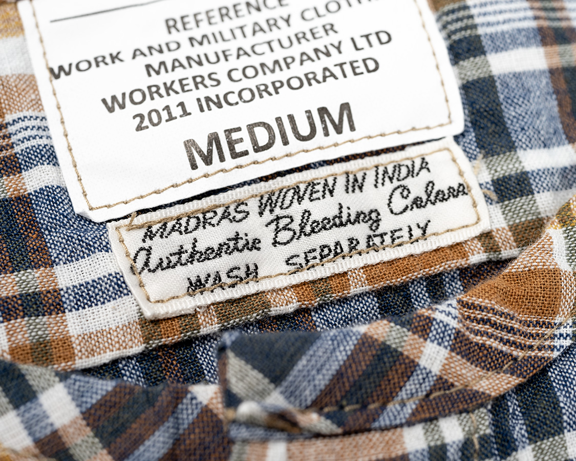 マドラスにはインド製である事、洗うとにじむことを示したラベル。今のマドラスは昔ほどにじみませんが、古着で見たタグを真似して。