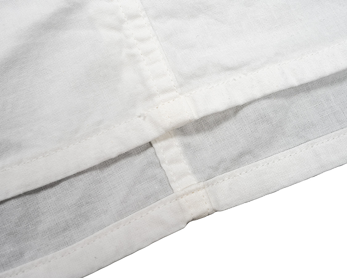 脇の巻縫い。表から見るとシングルステッチのダブル、裏から見るとチェーン。