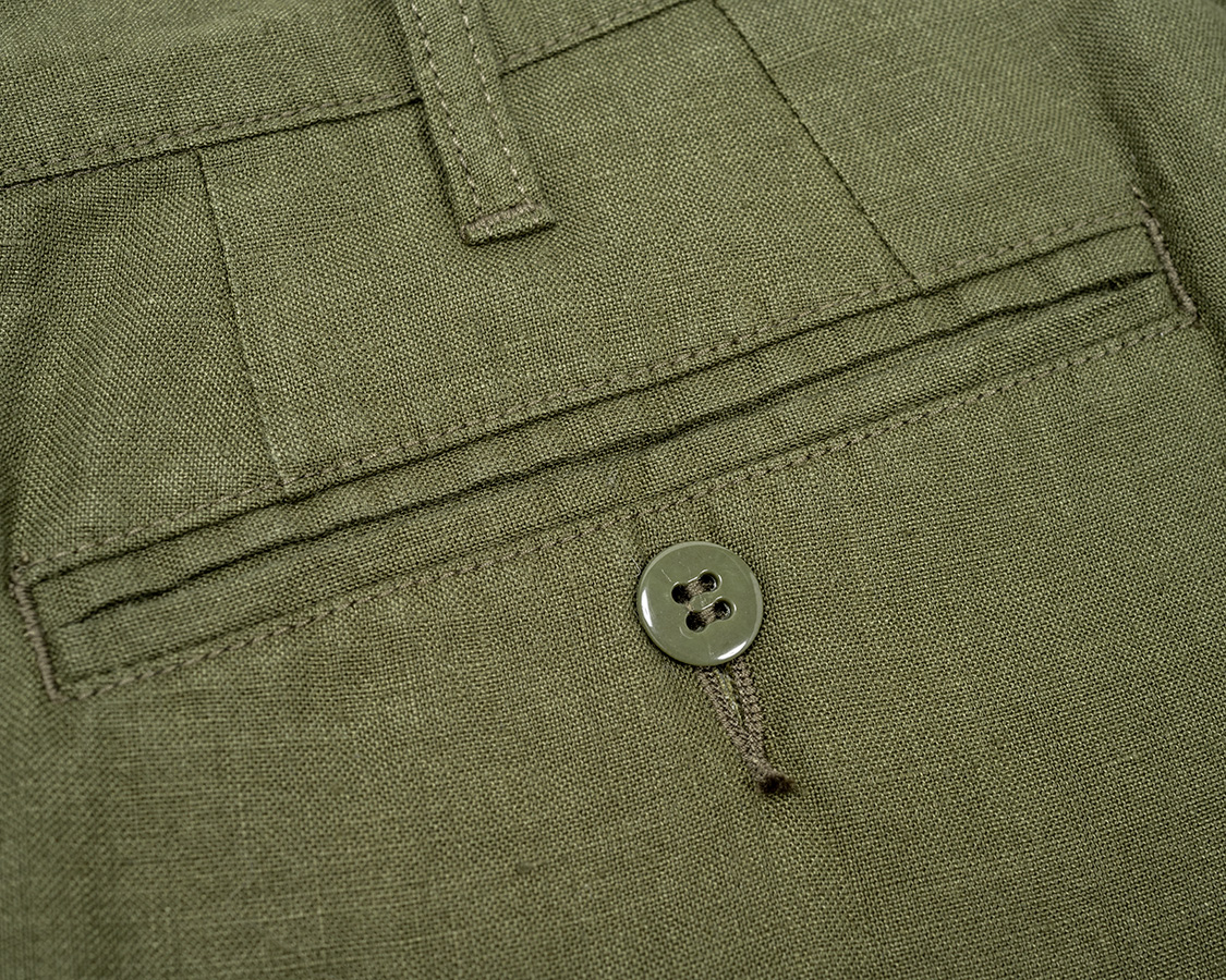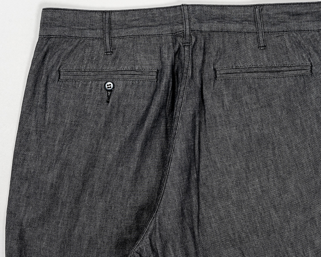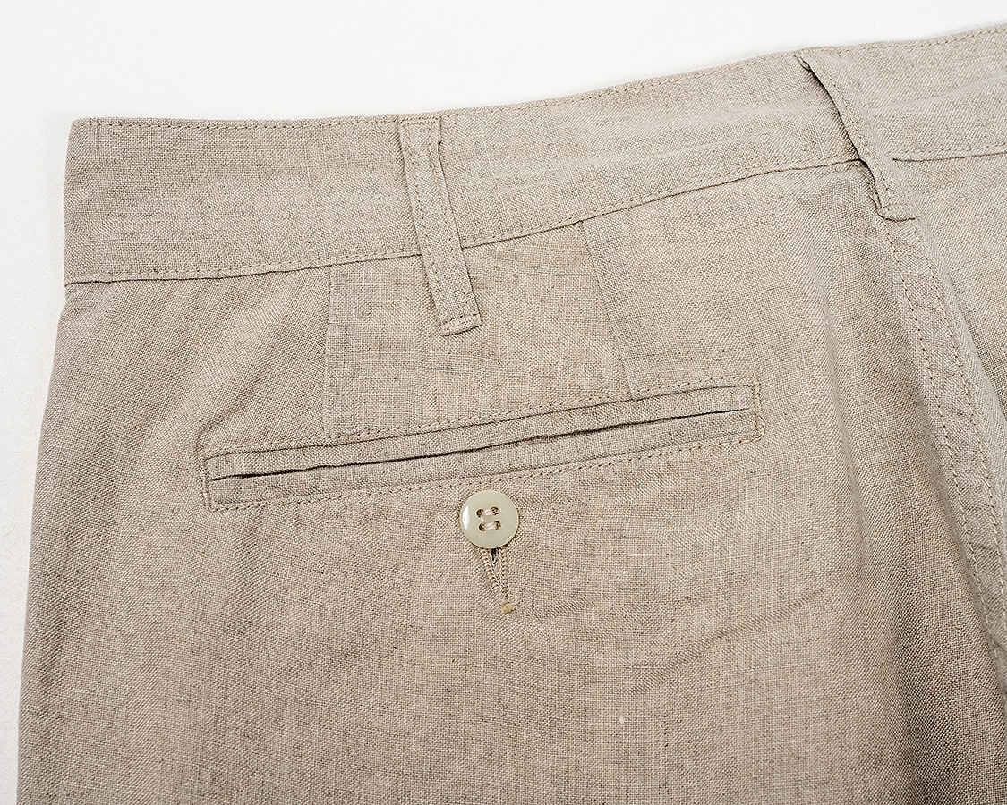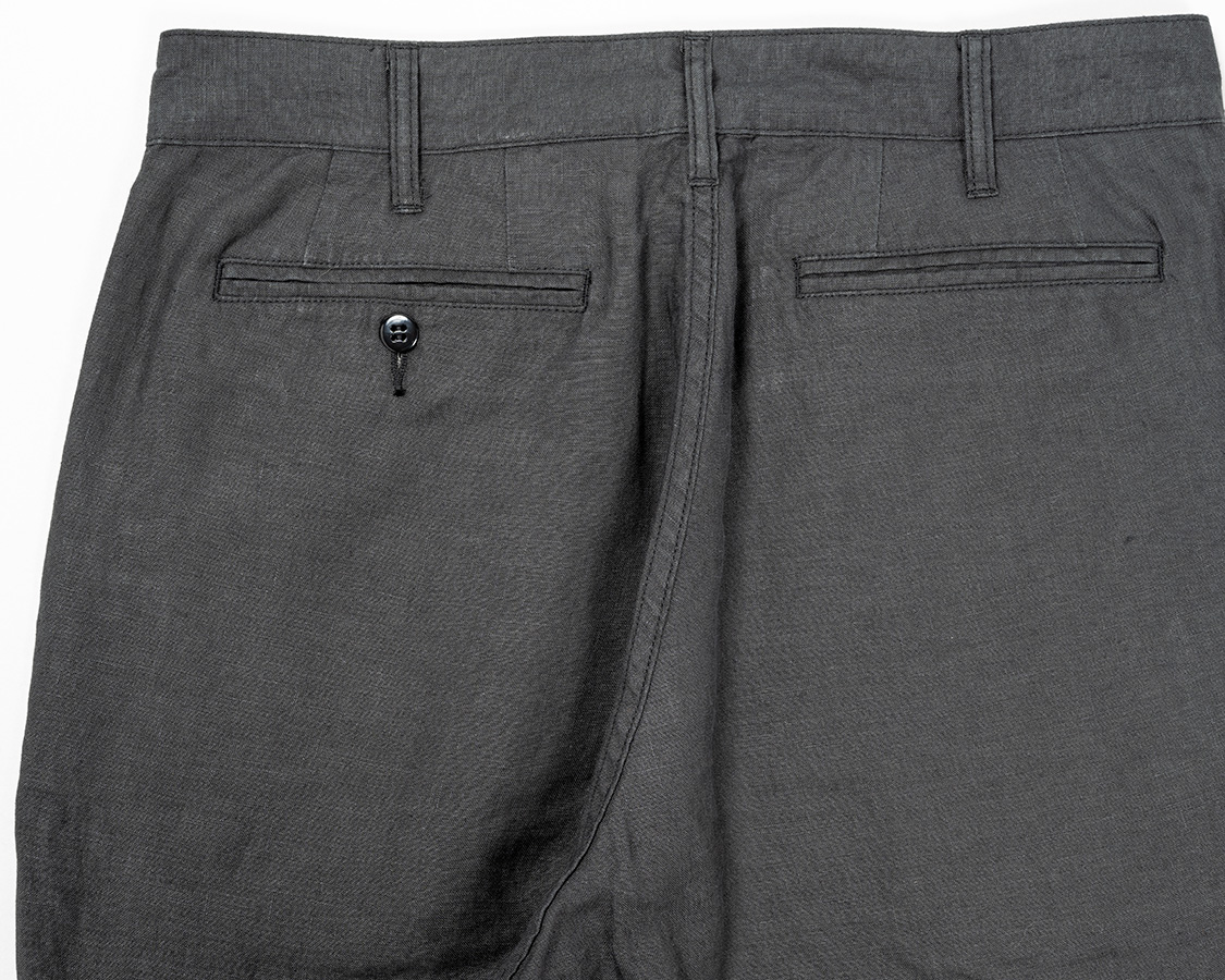 背面、左身頃側だけボタン付きポケット。ダーツは半身2本。こうすると、ヒップの丸みをよりなだらかに取る事が出来ます。手間は手間なのですが。