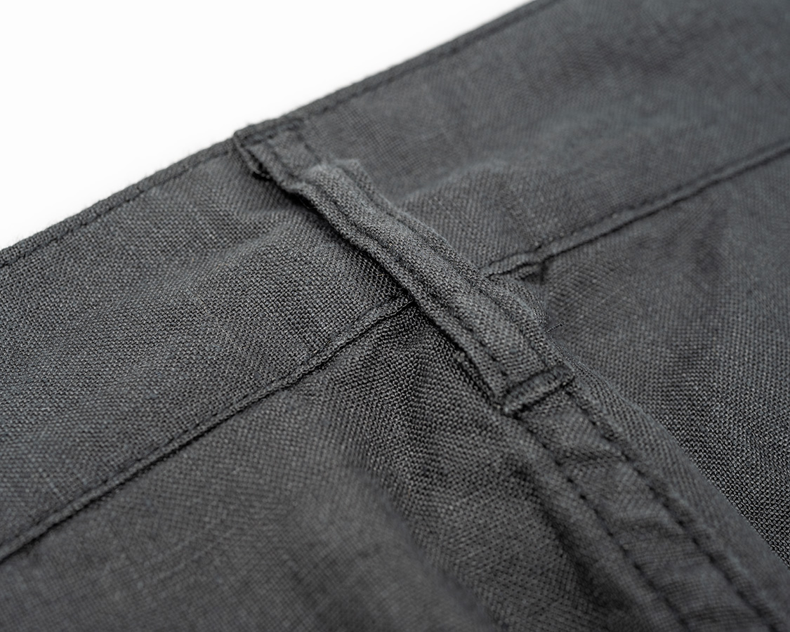 ベルトループ、後ろ中心は縫い目に載せて。他の部分も極力袋布に載せて。1枚の身頃にカンヌキをなるべく打たないようにしています。生地自体が全体的に薄手なので、カンドメ部分の土台に厚みを持たせ強度を上げようとしています。
