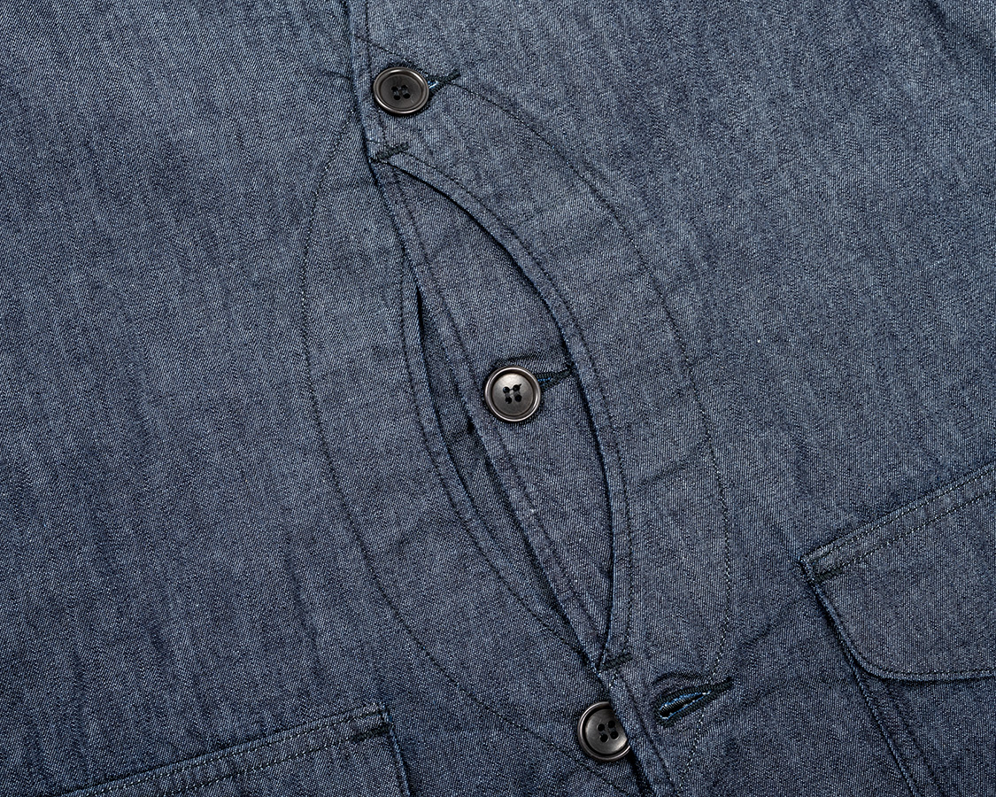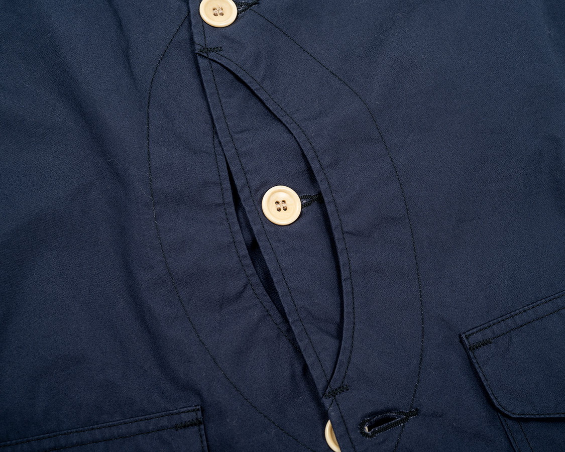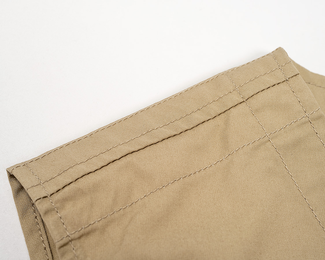 WORKERS定番の「Cruiser Vest」との違いは内部構造。フロントの裏地が途中までしかない、後ろ身頃は裏地が無い。これにより、夏場、暑くるしくないのにフロントポケットの機能性はキープ。