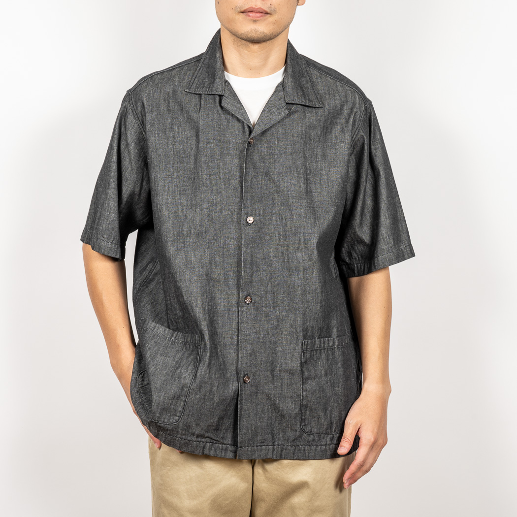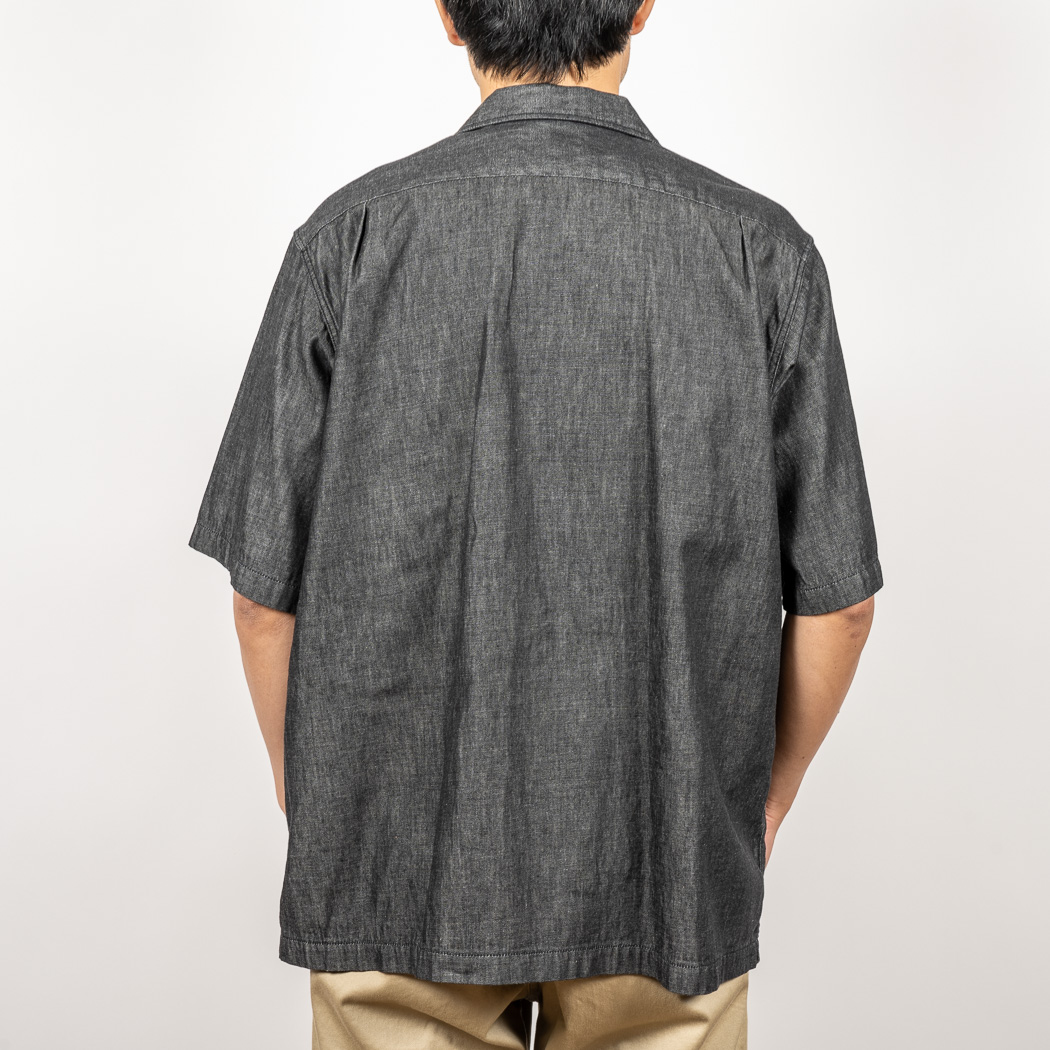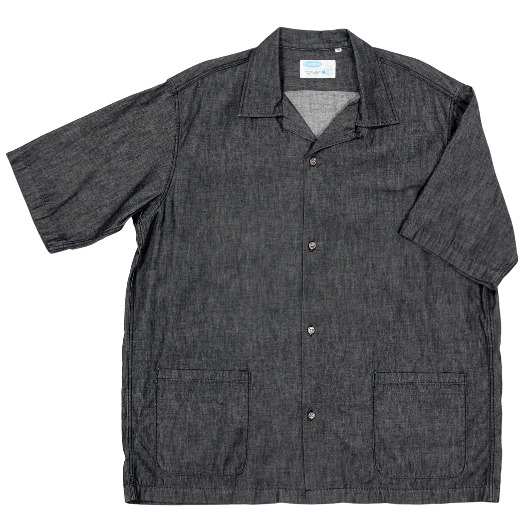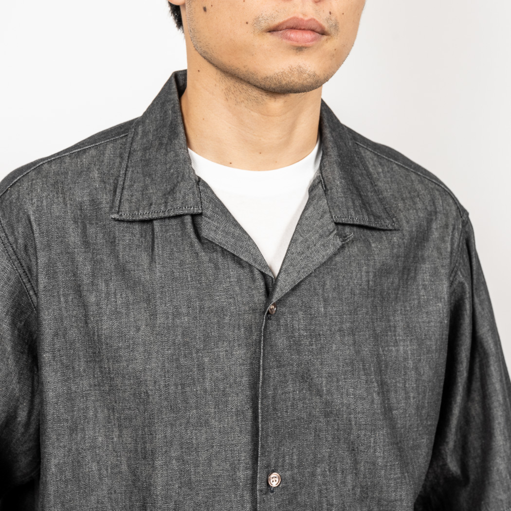 Open Collar Shirt, 6 oz Black Denim