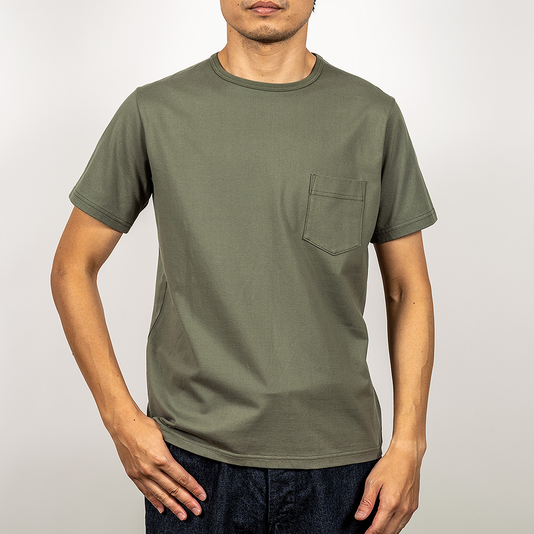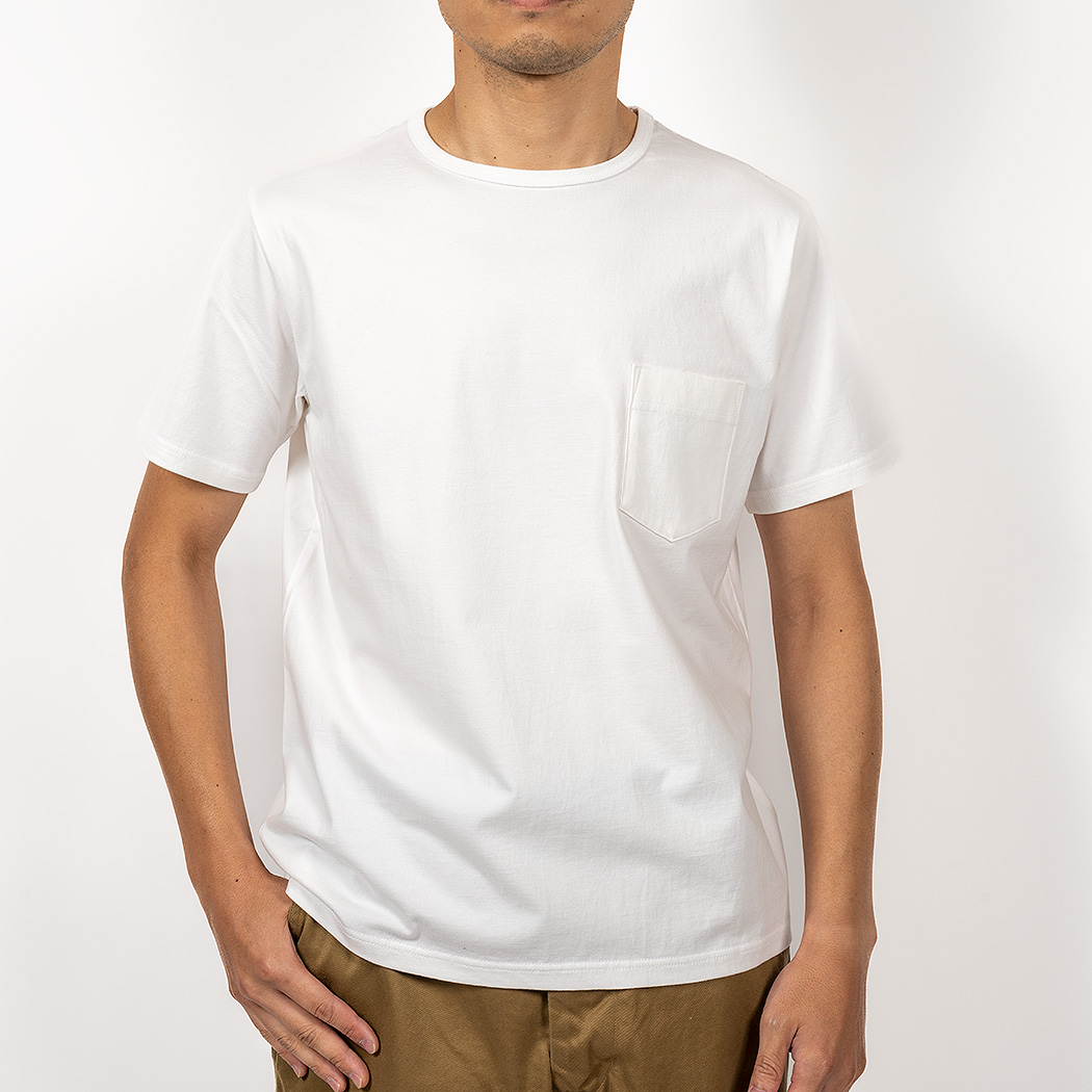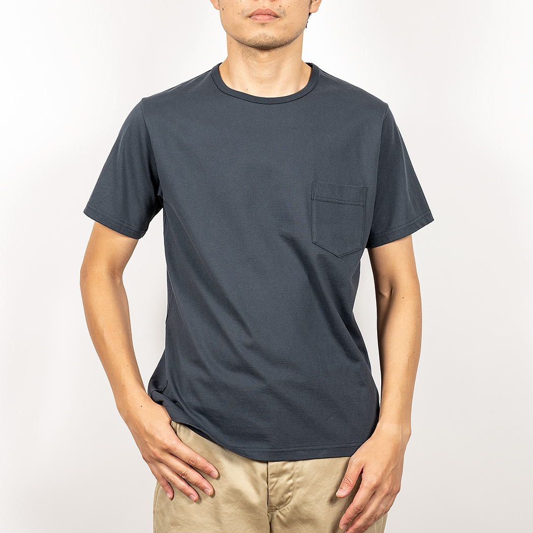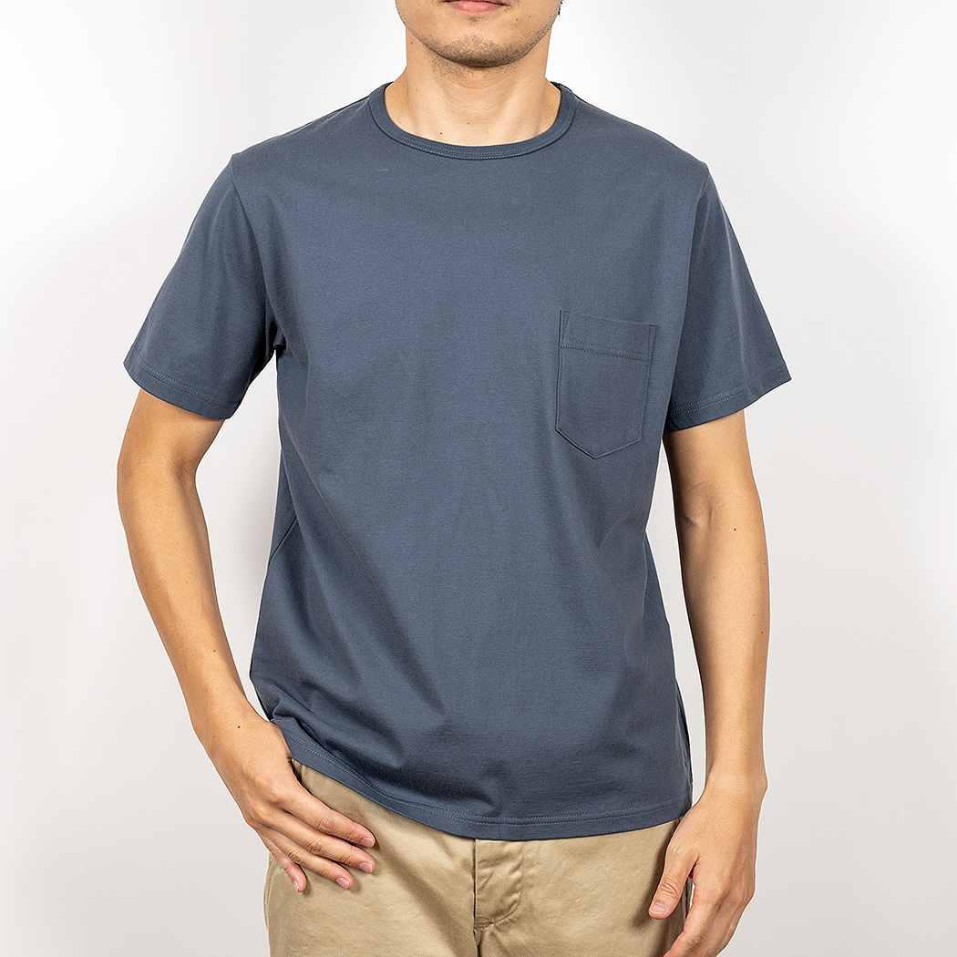 Slim Fit はシャツジャケットの中に綺麗なT シャツを着たいというのが発想の原点。生地に伸びはありますが、戻り(キックバック)が良いので形崩れしづらい。