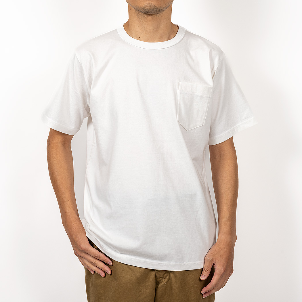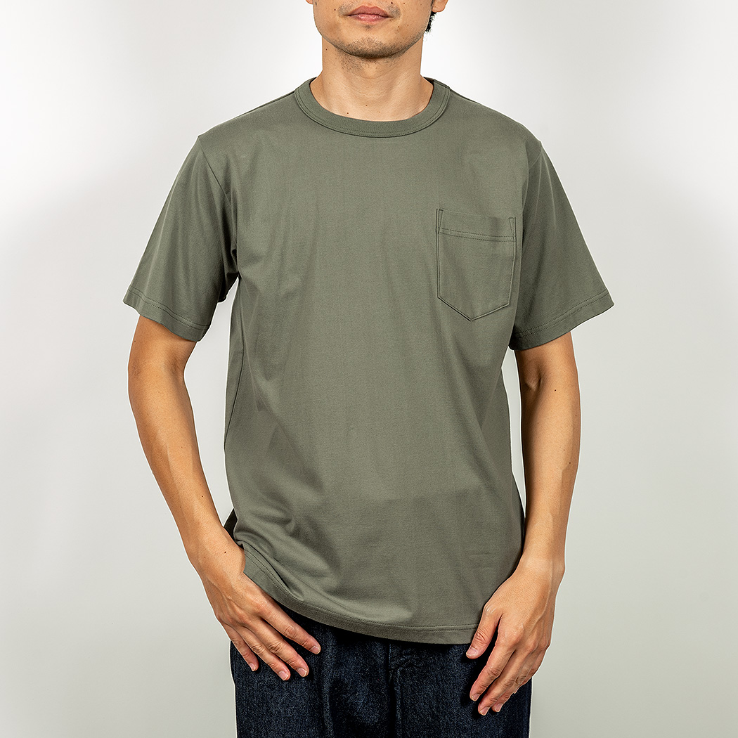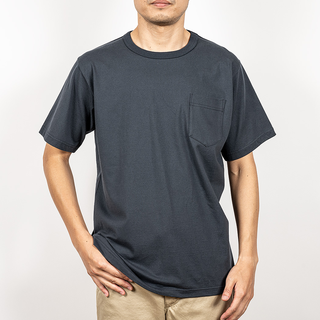 シルエット、Slimより身幅が広い。袖が長い、袖口も広い。典型的な「Tシャツ」のシルエット。1枚で着たり、丈が70センチぐらいあるシャツや軽いアウターの中に着たり。Gジャンの中に着るとTシャツの裾がのぞきます。