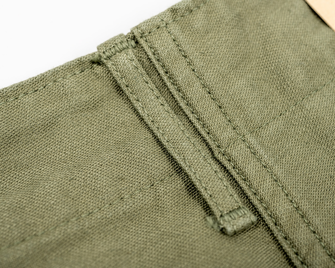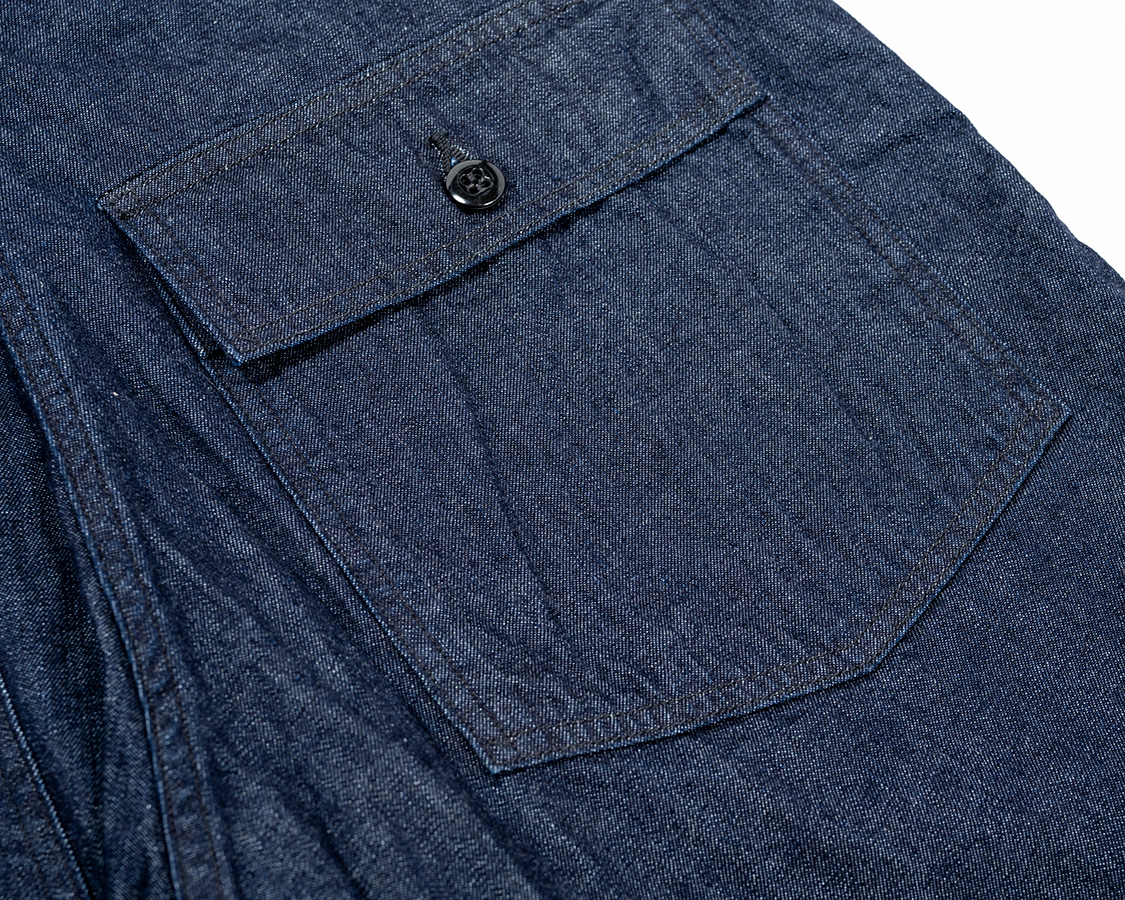バックポケットは取り付ける時、少しゆとりを入れるのでタテにシワが出ます。手や物を入れやすいように。