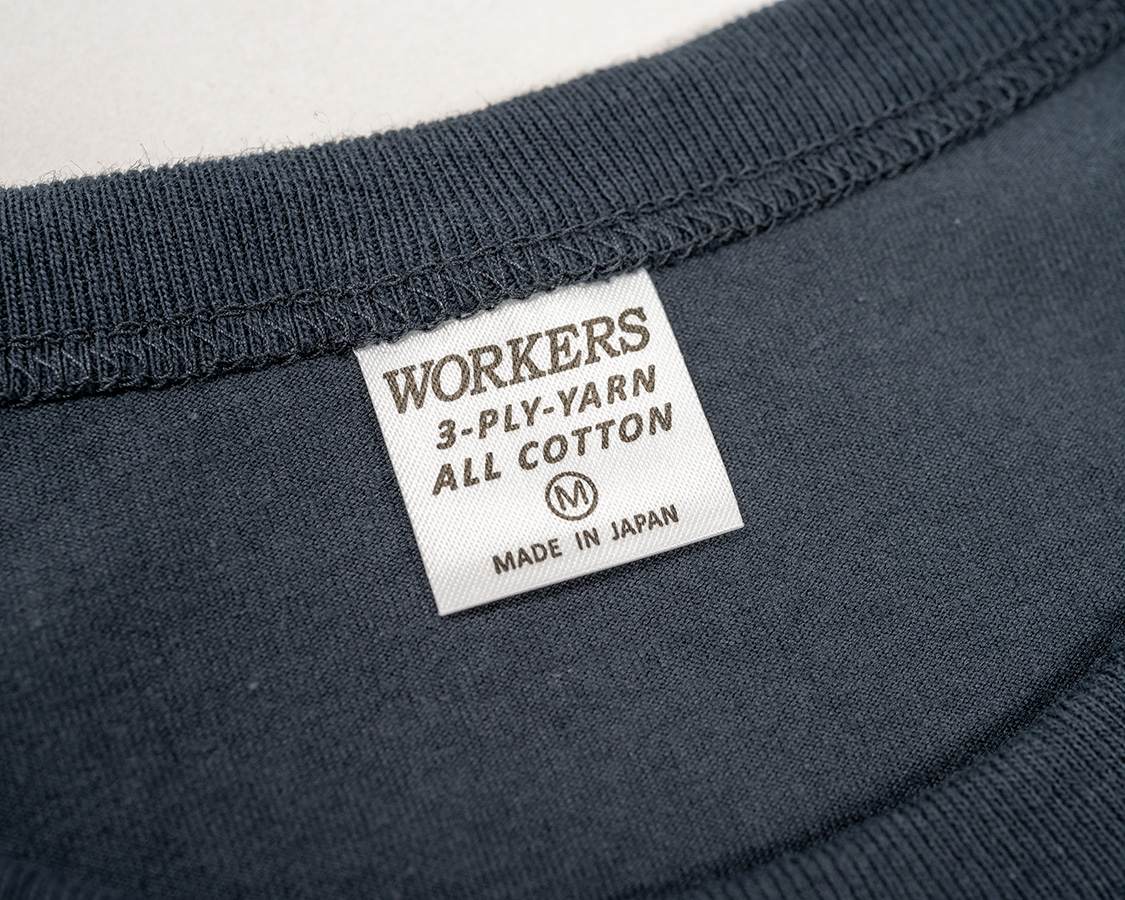 3-PLY-YARN、わざわざ専用ネーム作ってます。ビンテージの洋服見ていて、確か2-PLYだったか・・・でこういう専用ネーム作っているものがありました。「昔の人も材料が違うんだ!って言いたかったんだよなぁ」と共感。素材、特に糸の撚り本数は大事だけどぱっと見ではなかなかわかってもらいづらい部分。