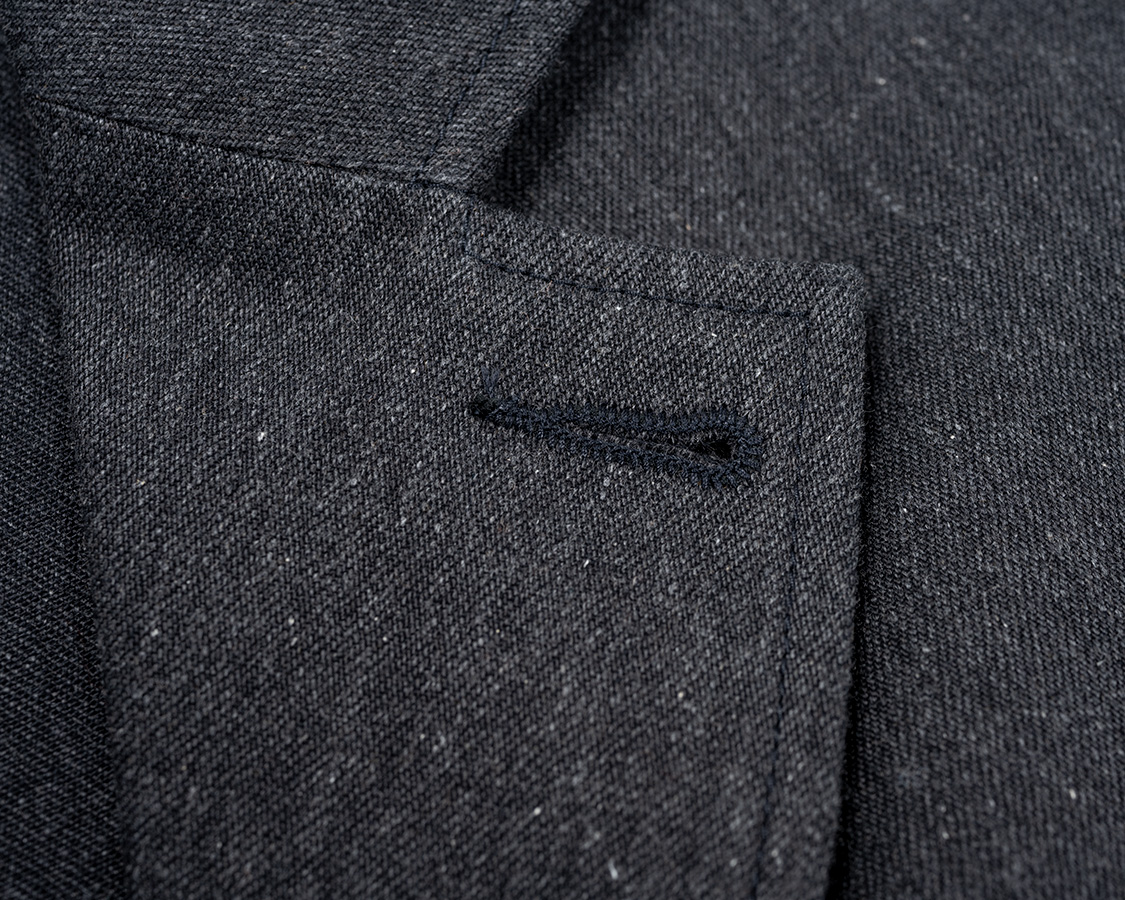 トップのボタンホールは開いていて、逆側には止めのボタンもあり。