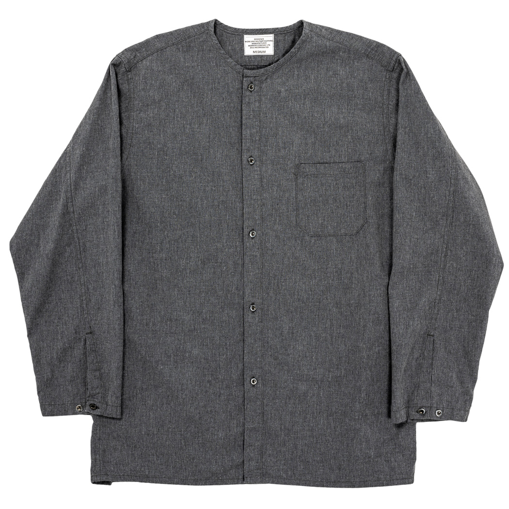 素材、ブラックシャンブレー、ネイビーチェックは5.5 オンス程、通年着られるシャツの厚み。ネイビーはインディゴのように見えますが、反応染めなので色落ちの心配はほとんど無し。