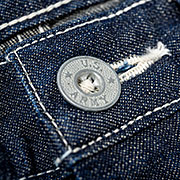 アレンジで生成りデニム。真っ白ではなく、生成り。そのため、生地表面には綿の葉カスが少し残っています。
