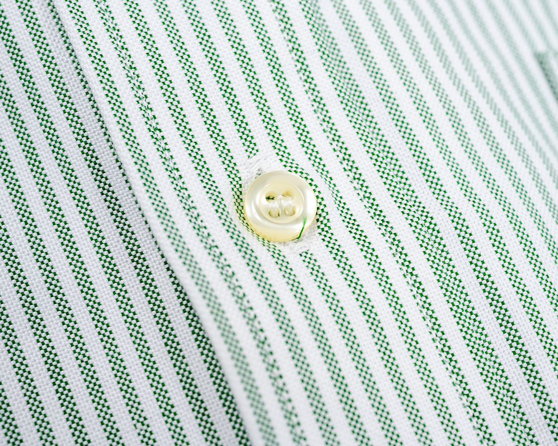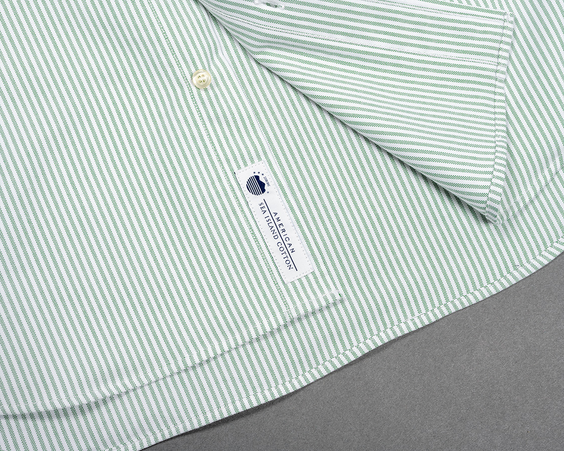 Modified Wide Spread Shirt, American Sea Island Cotton OX, Green Stripe |