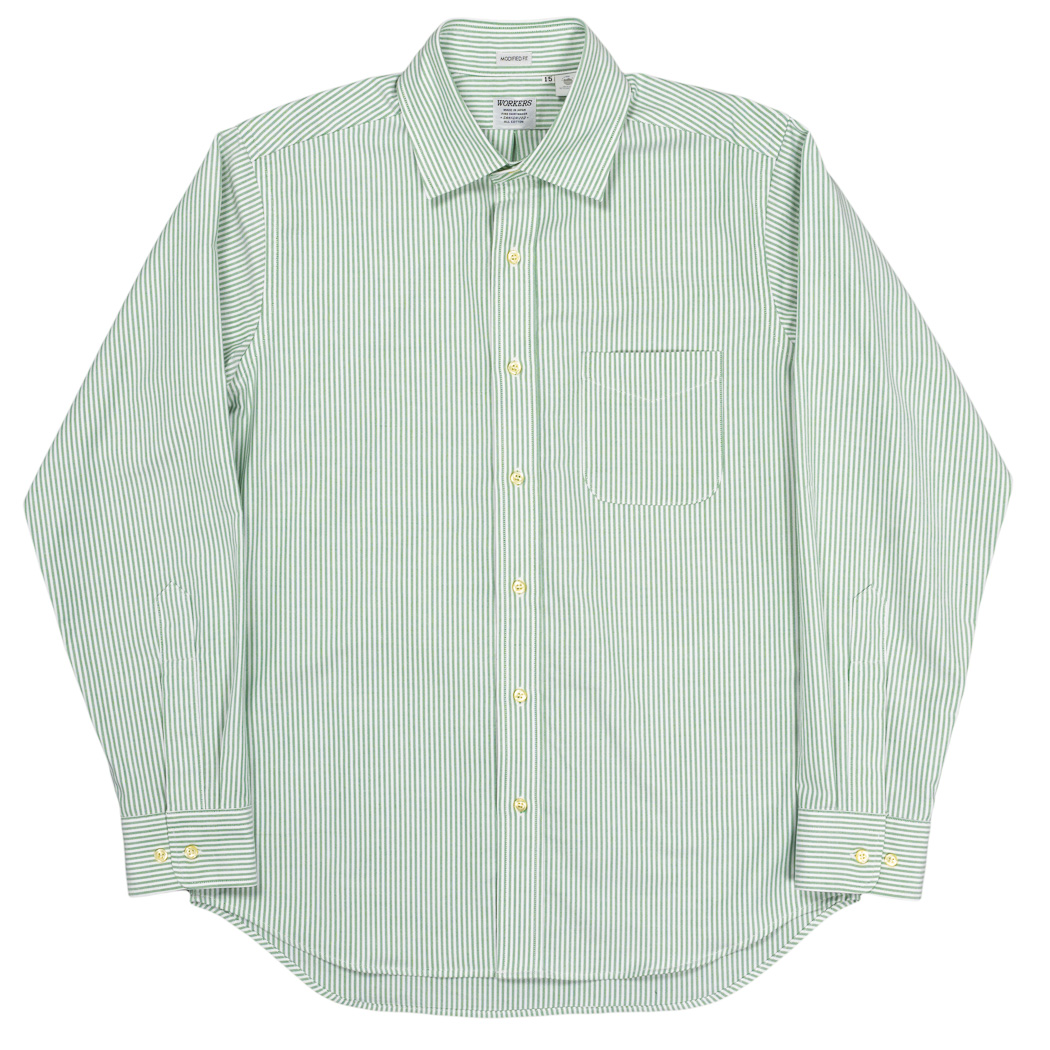 Modified Wide Spread Shirt, American Sea Island Cotton OX, Green Stripe