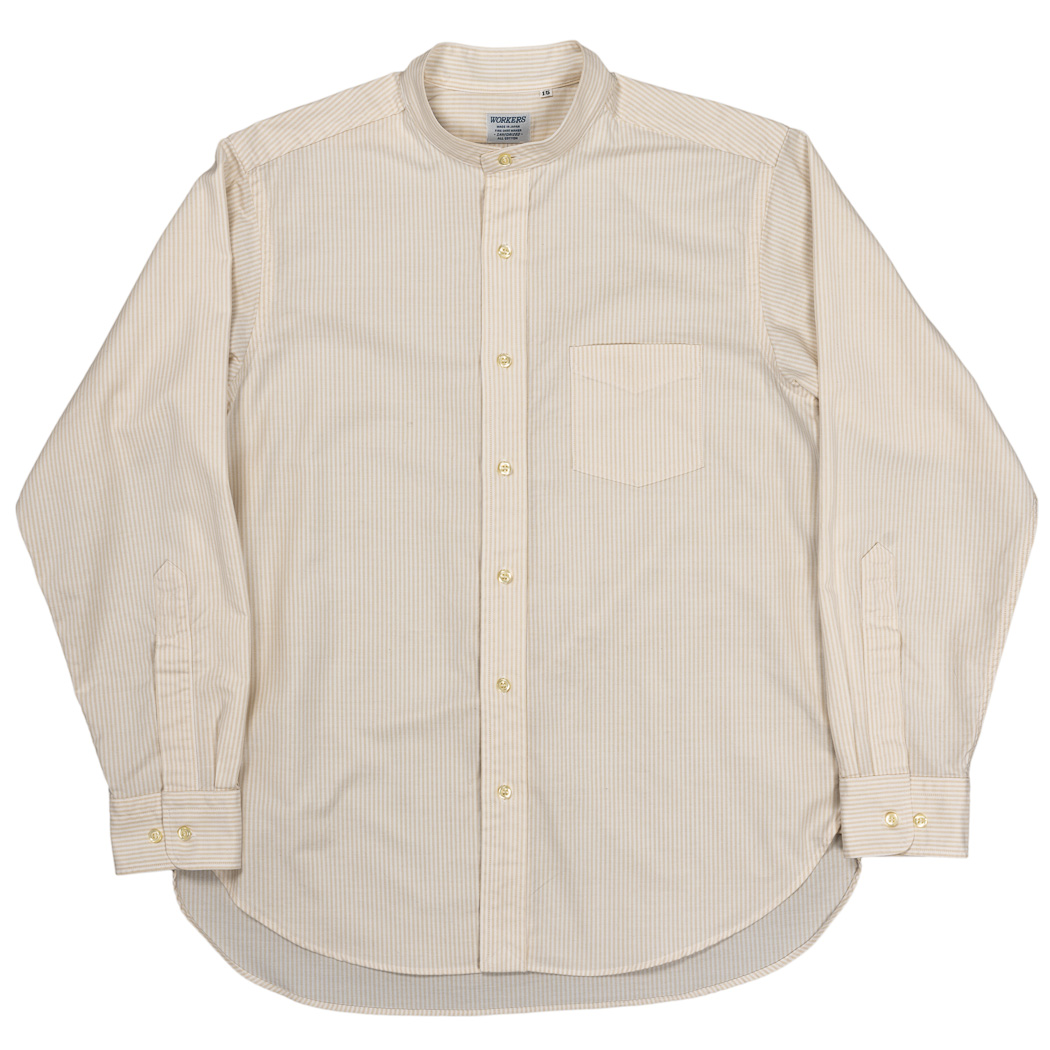 Band Collar Shirt, Ecru Stripe Supima OX |