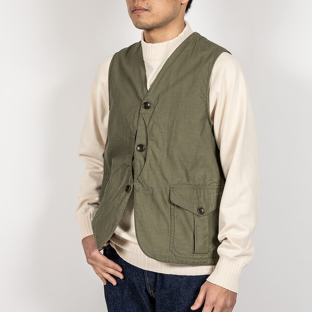 ルボナーの松本さんは夏場、Tシャツの上にCruiser Vestが定番。タバコやライター入れたり、フロントの三日月ポケットに万年筆をさしたり、やりたい放題で着てました。