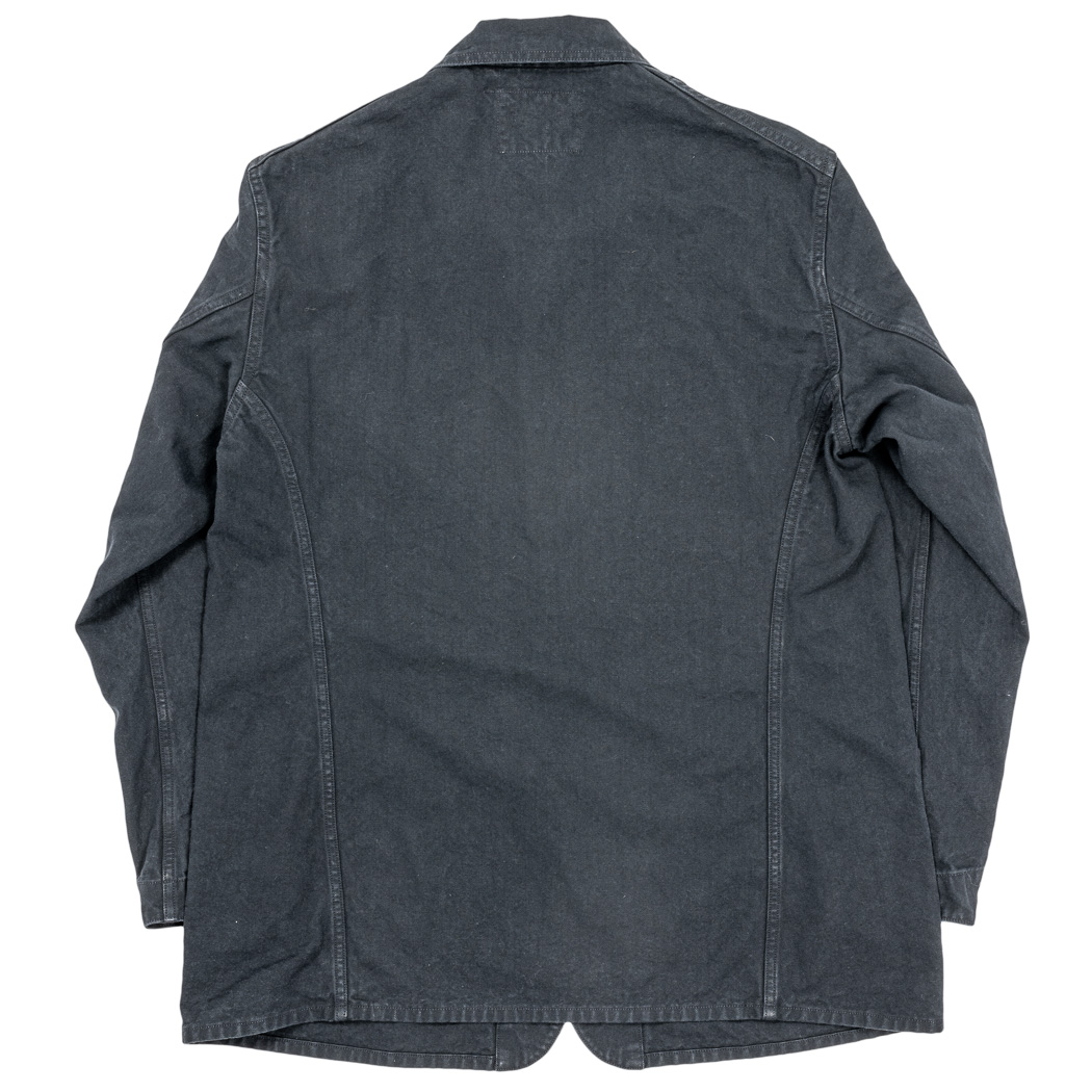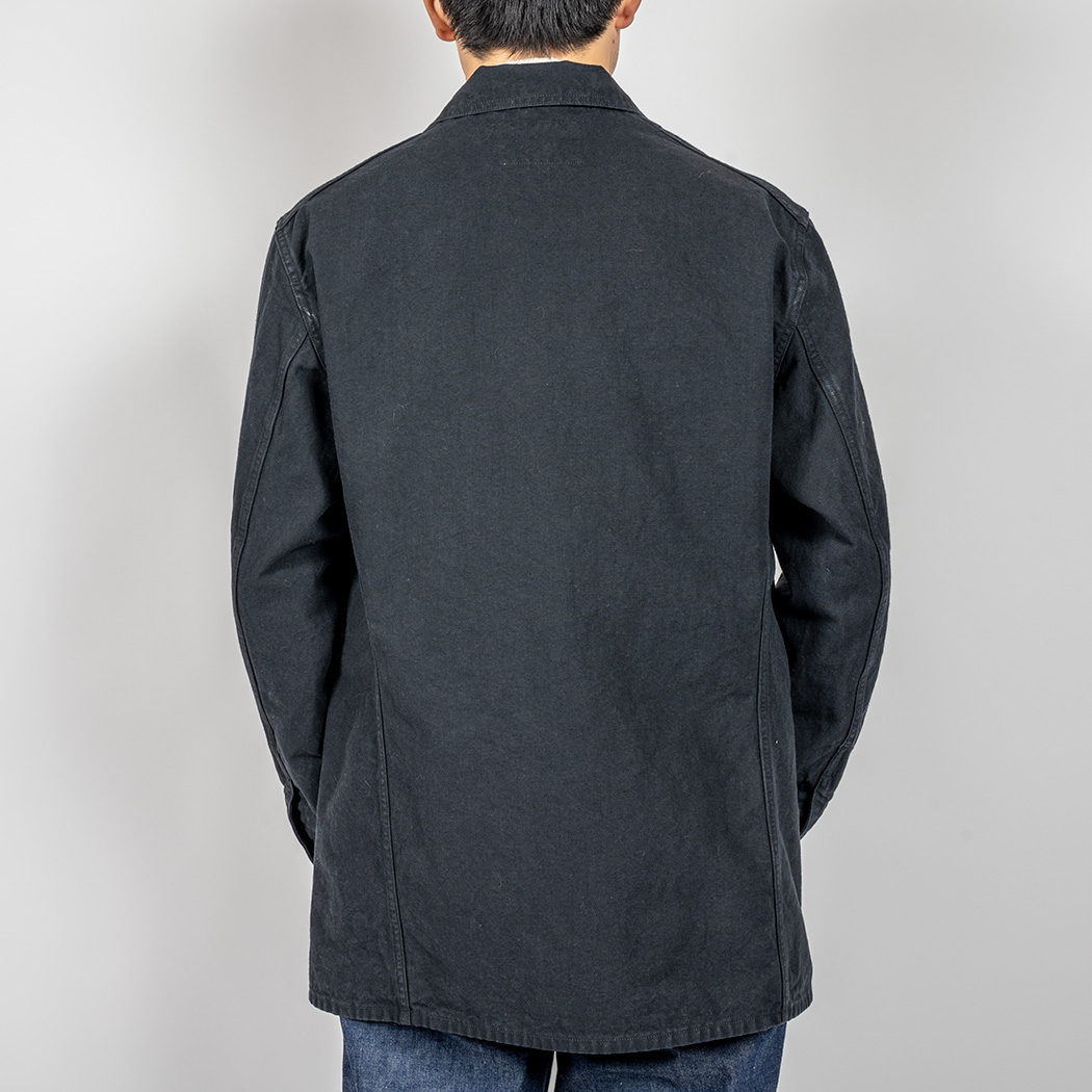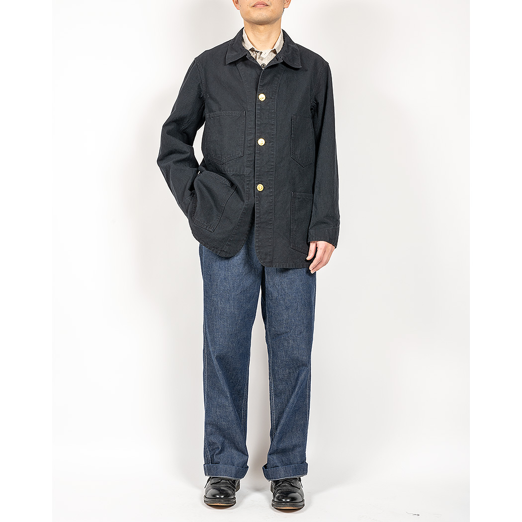 素材、いずれも10 オンス程。今回は防縮の入った生地ですが、現代のガッチガチな防縮では無いので製品でOW、縮切った状態にしています。初めて作ったBlack Duck、硫化染めでデコボコ部分に陰影が出て立体的な良い雰囲気。 |