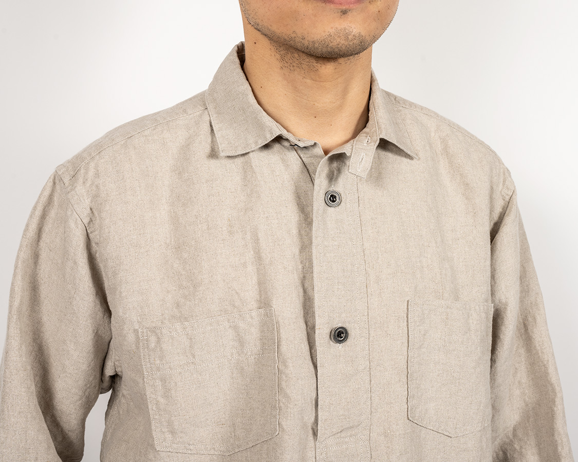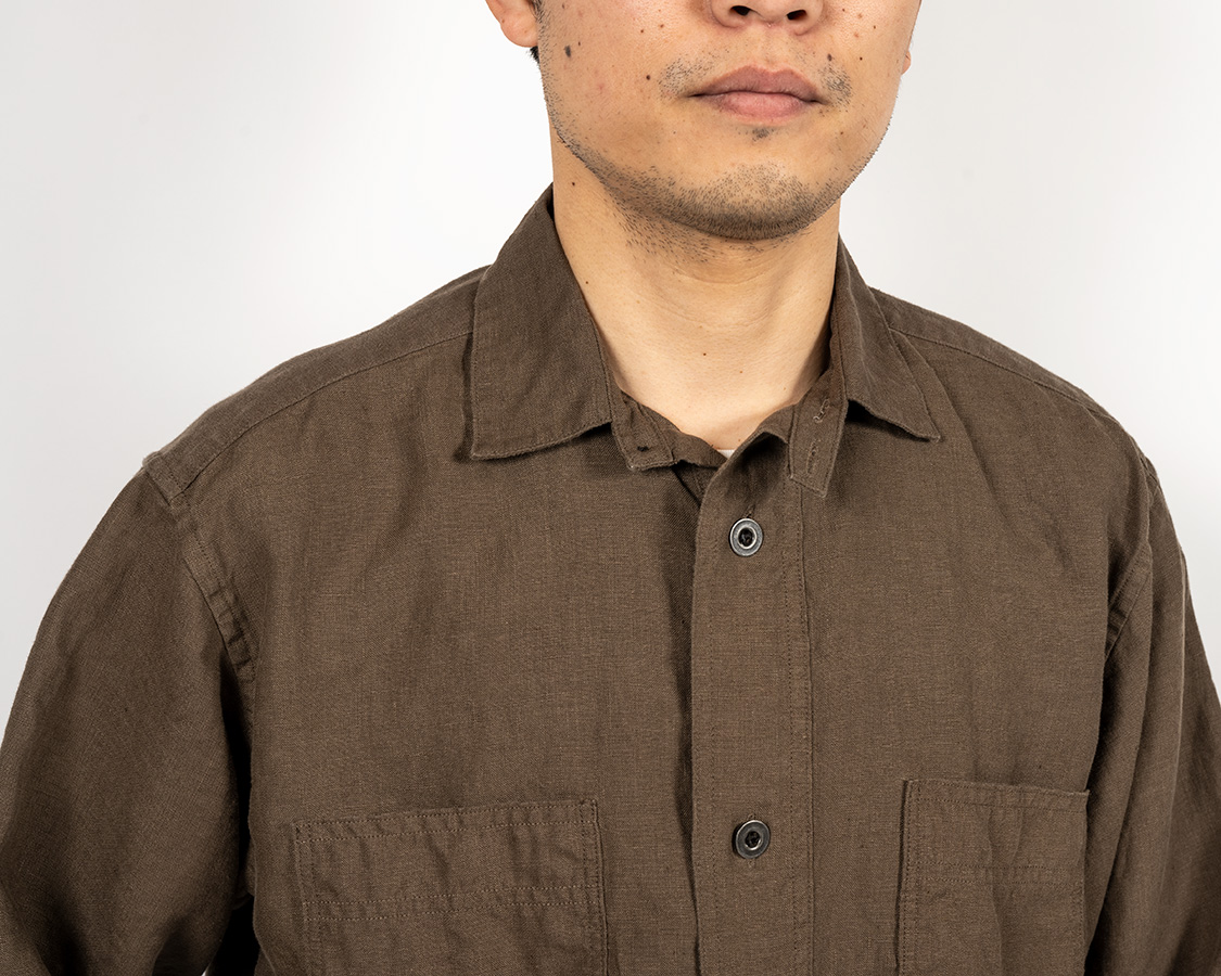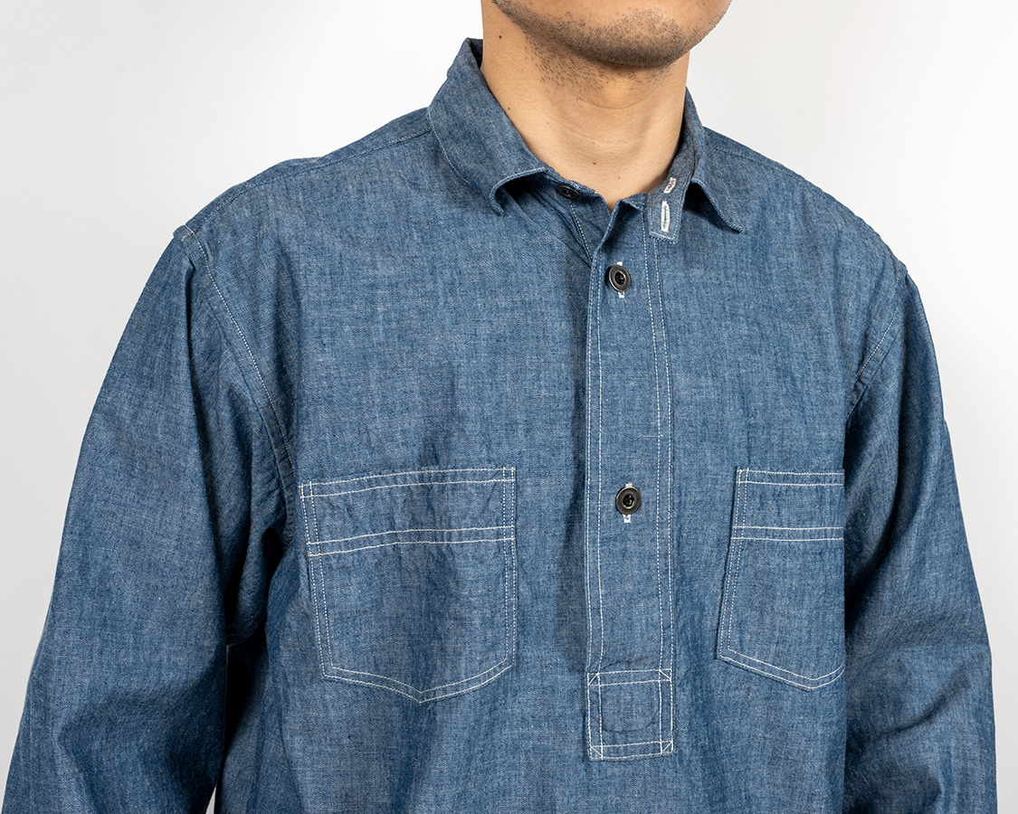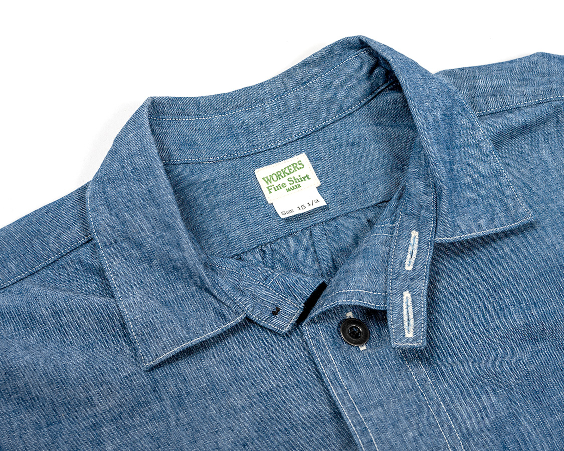 チンストラップ+小ぶりな襟。これぞクラシックワークシャツ!という仕様。