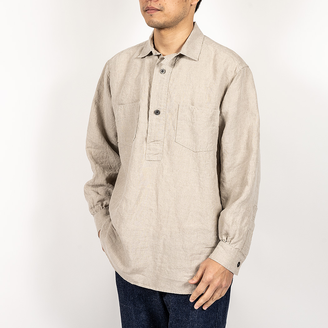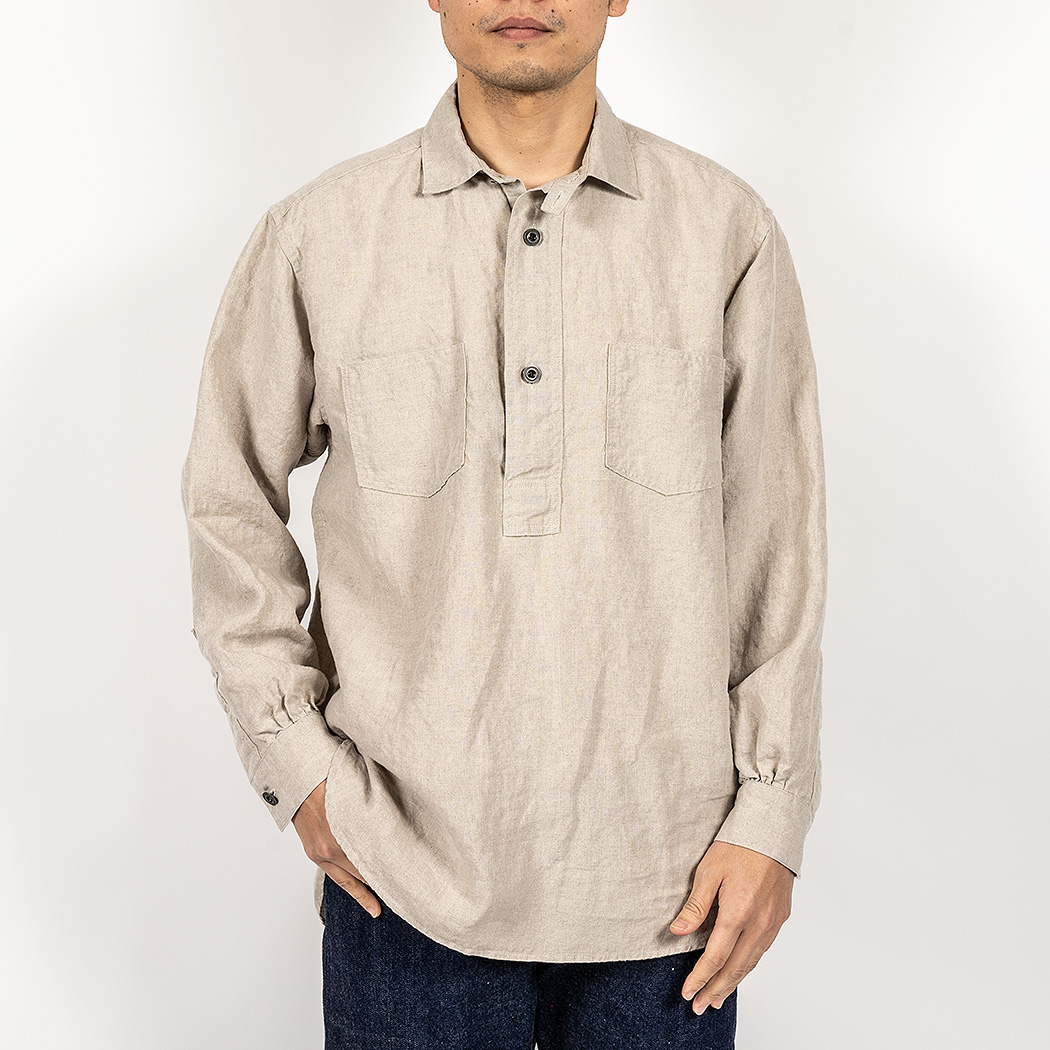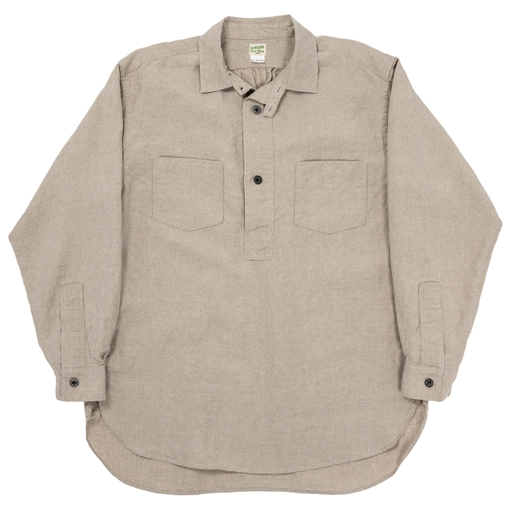 Pullover Work Shirt, Brown Linen Pullover Work Shirt, Ecru Linen Pullover Work Shirt, Blue Chambray Pullover Work Shirt, Denim