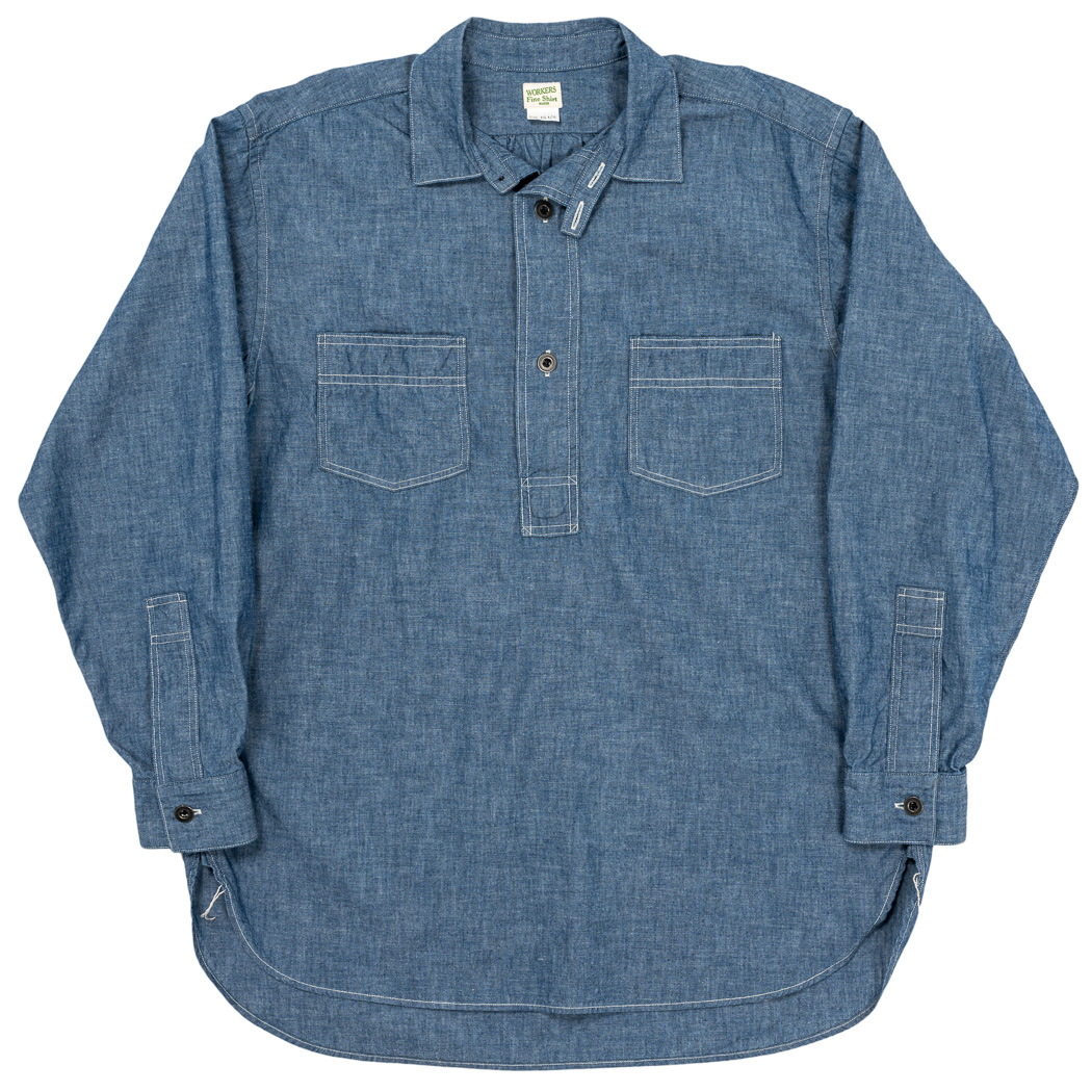 Pullover Work Shirt, Brown Linen Pullover Work Shirt, Ecru Linen Pullover Work Shirt, Blue Chambray Pullover Work Shirt, Denim