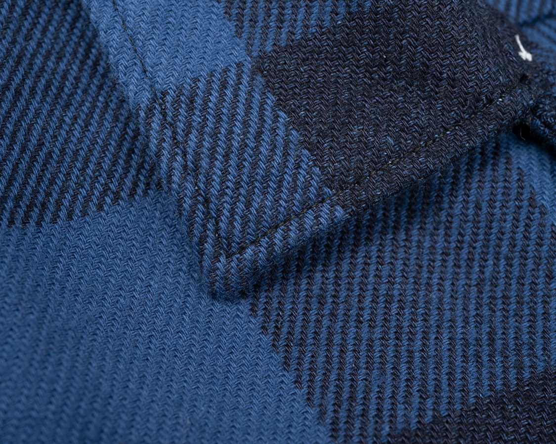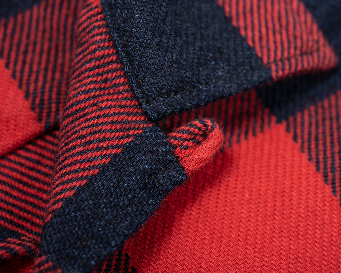 今回、色は4種類ですが生地の作り方としては2種類。インディゴチェックはネルといてっも表面をひっかいて起毛はしていません。着て行くうちにインディゴの色が抜けつつ多少の毛羽が出る感じ。