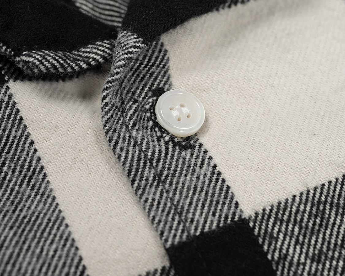 Flannel Open Collar Shirt, Grey Buffalo Check |