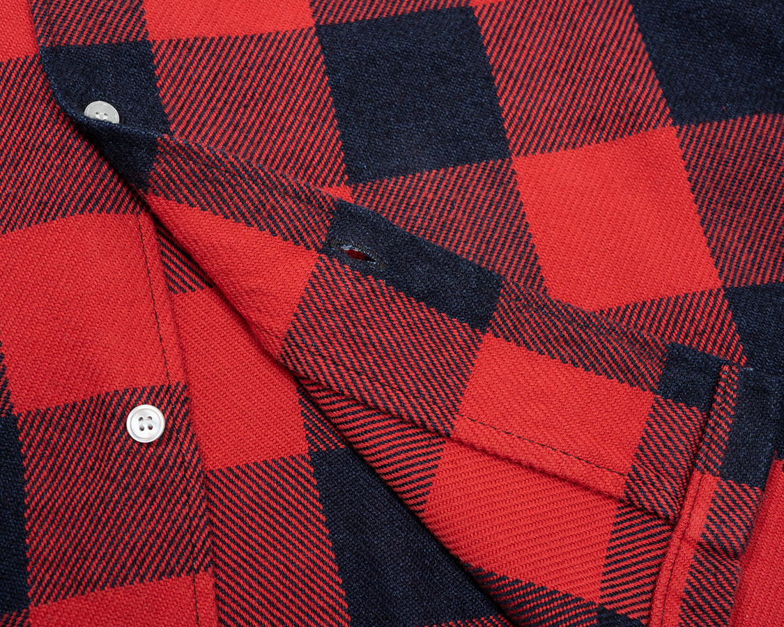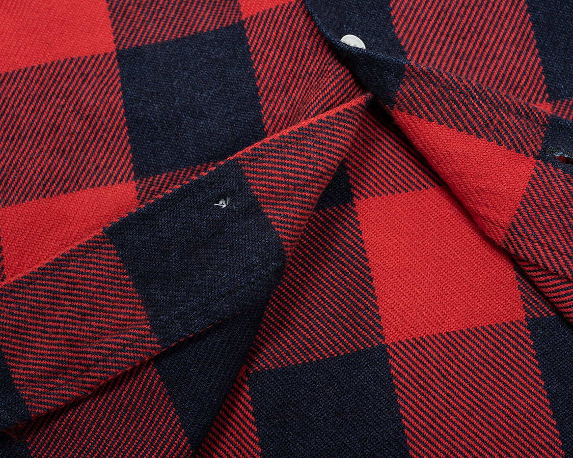 Flannel Open Collar Shirt, Red Indigo Buffalo Check |