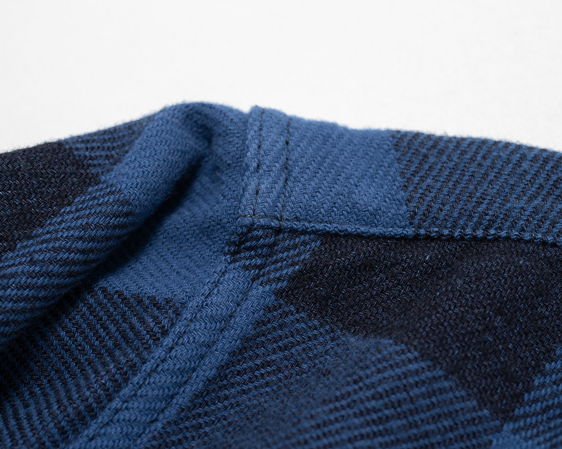 Flannel Open Collar Shirt, Navy Indigo Buffalo Check |
