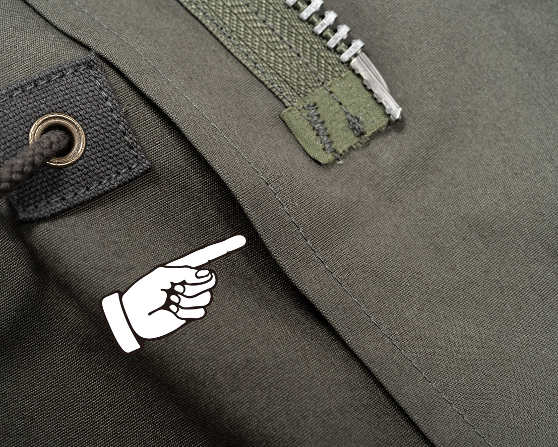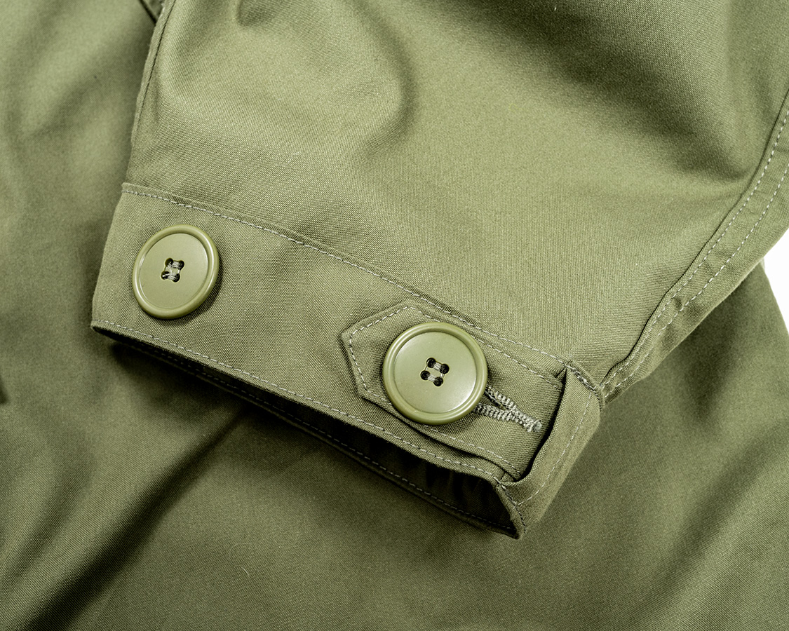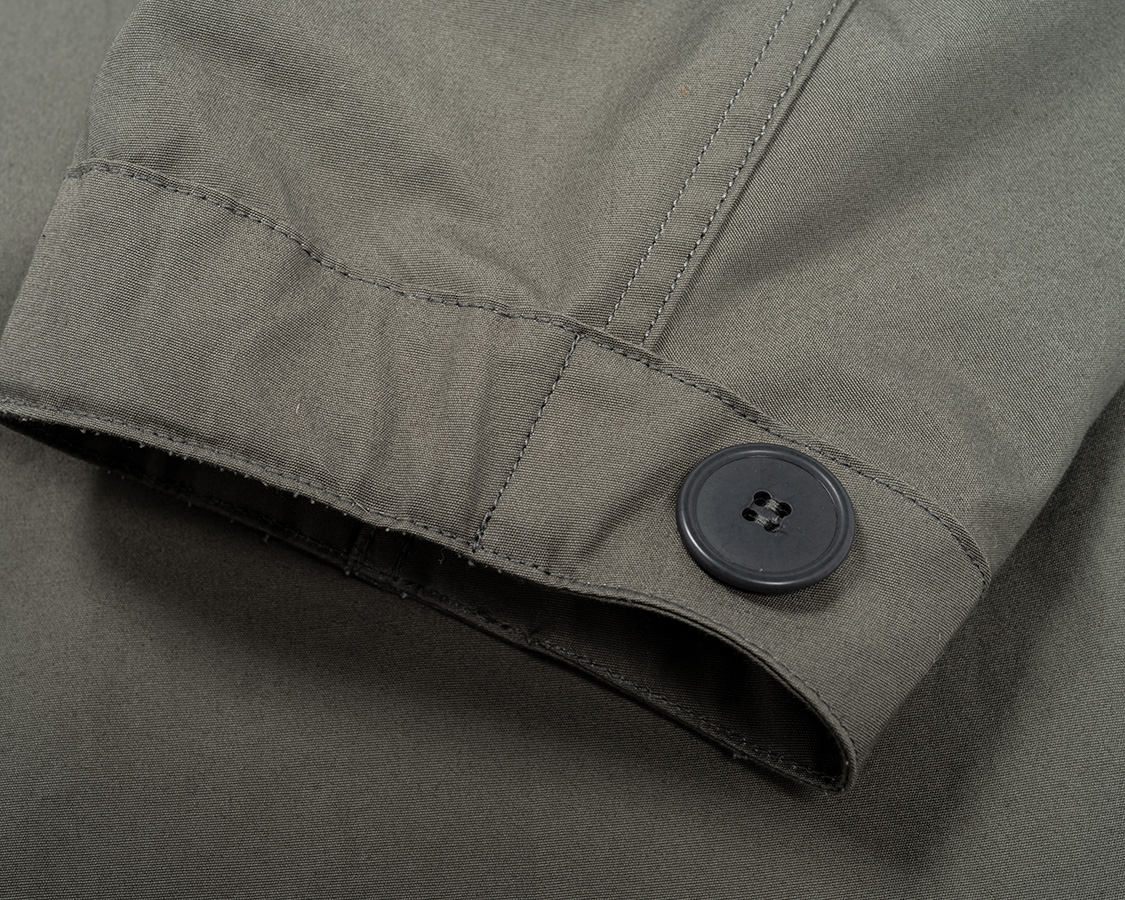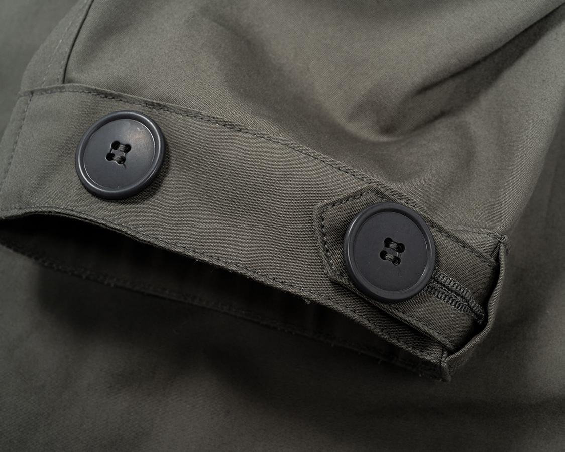 袖口の調節、タブ+中にゴム+ボタン。やたら大きいボタンは、手袋をしていても使いやすいようになどと言われていますが本当か不明。