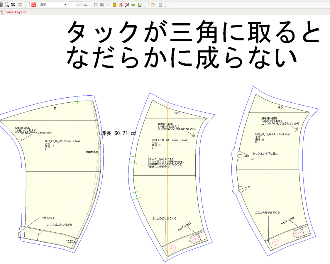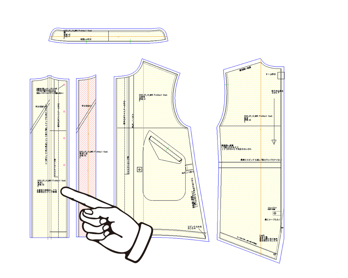 我ながら、書いていても同業のパタンナーさんしか「なるほど!」と言ってもらえないだろうと思いつつ、言わずにはいられない部分なのです。