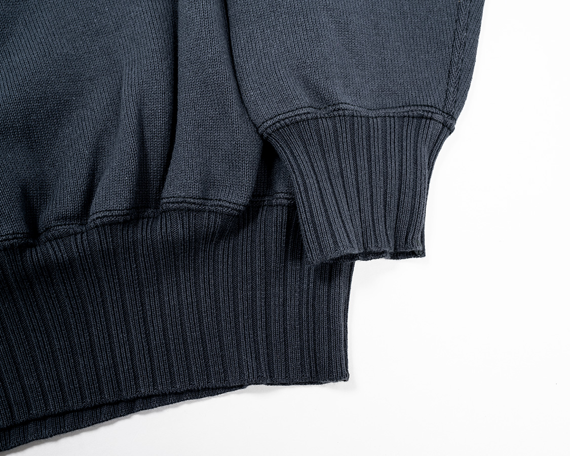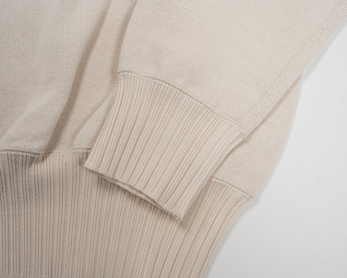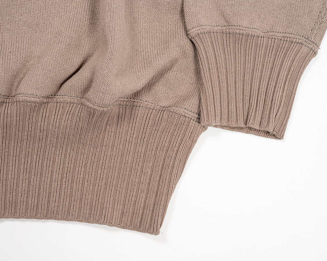 理由、裏毛は「表糸」「中糸」「裏糸」があり、起毛の時にひっかいても表まではそうそう響かない。生地に厚みがあるのです。それに対して天竺は、何本も糸をまとめたとしても最終的には一本になって糸で編むのでどうしても厚みが出ずらい。そこを、この素材は、